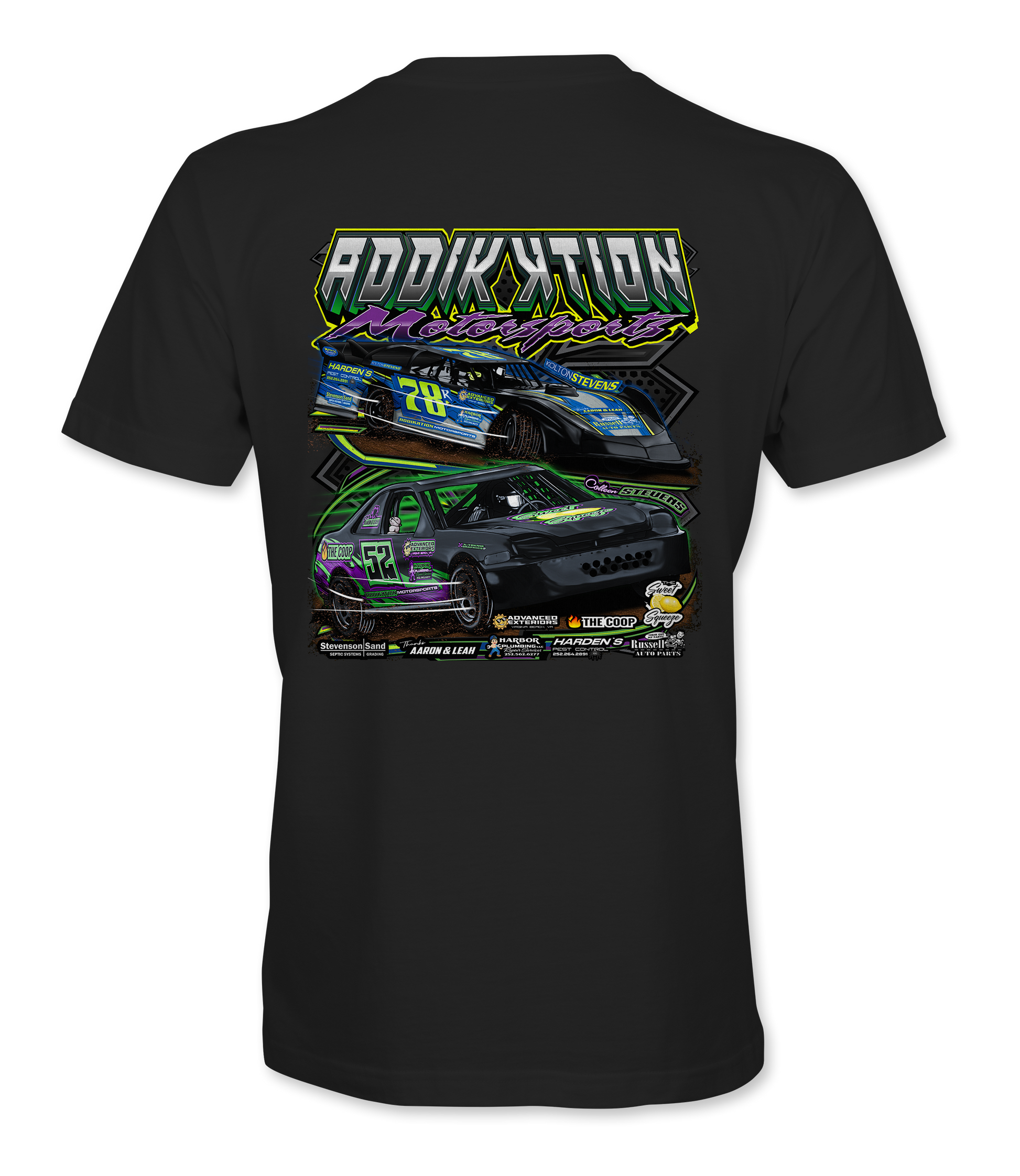 Addikktion Motorsports Official driver merchandise printed to order on premium apparel. Designed for race fans and supporters