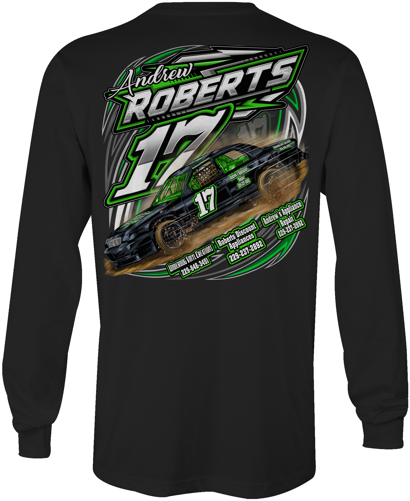 Andrew Roberts Official driver merchandise printed to order on premium apparel. Designed for race fans and supporters