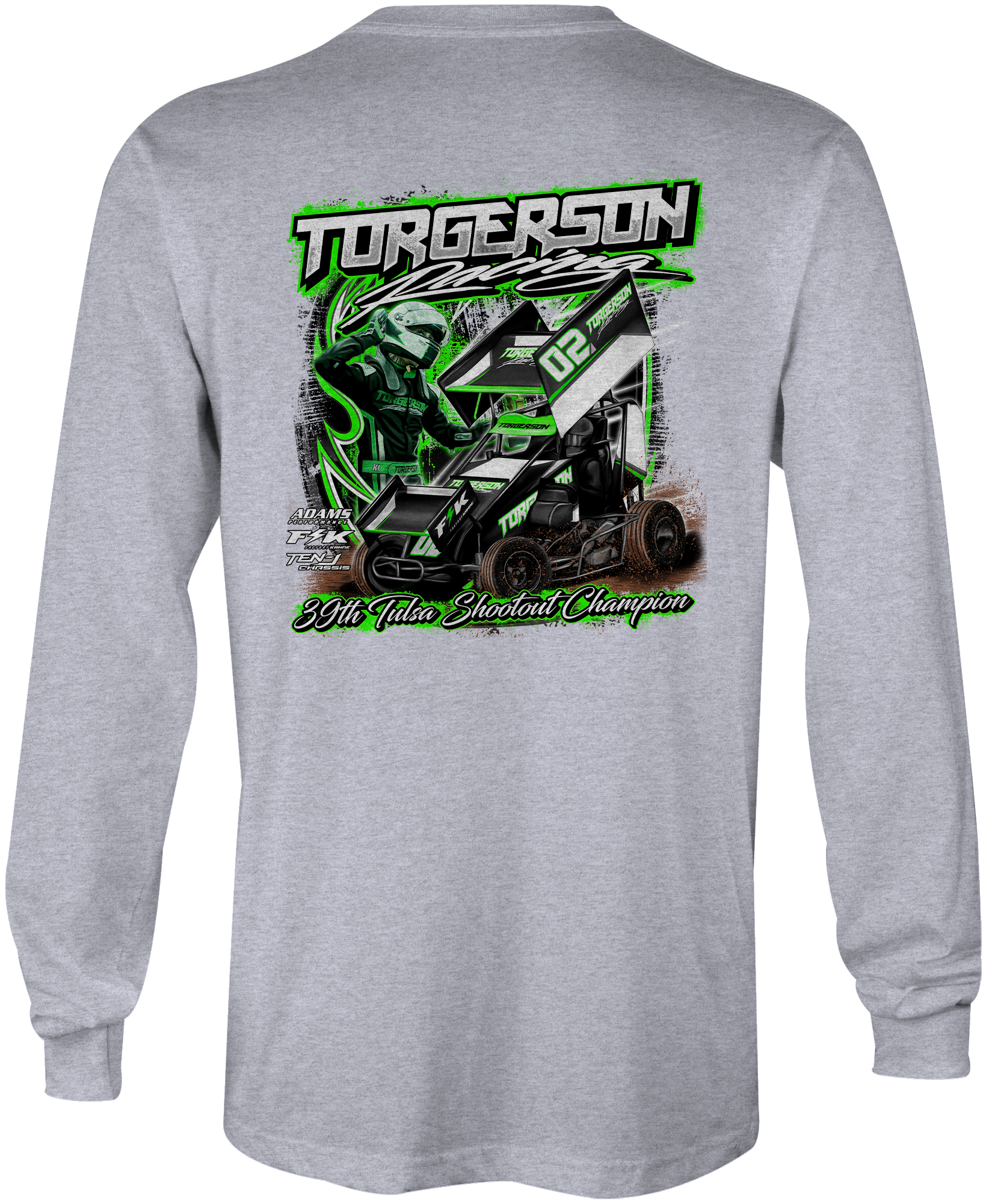 Support Ashton Torgerson and his team with their custom apparel! Available in Black, White and Sport Gray. Graphics are direct to garment printed with a left chest image and a full back image.