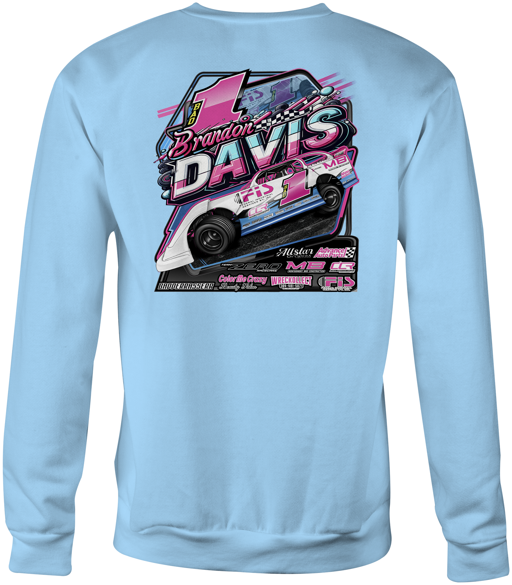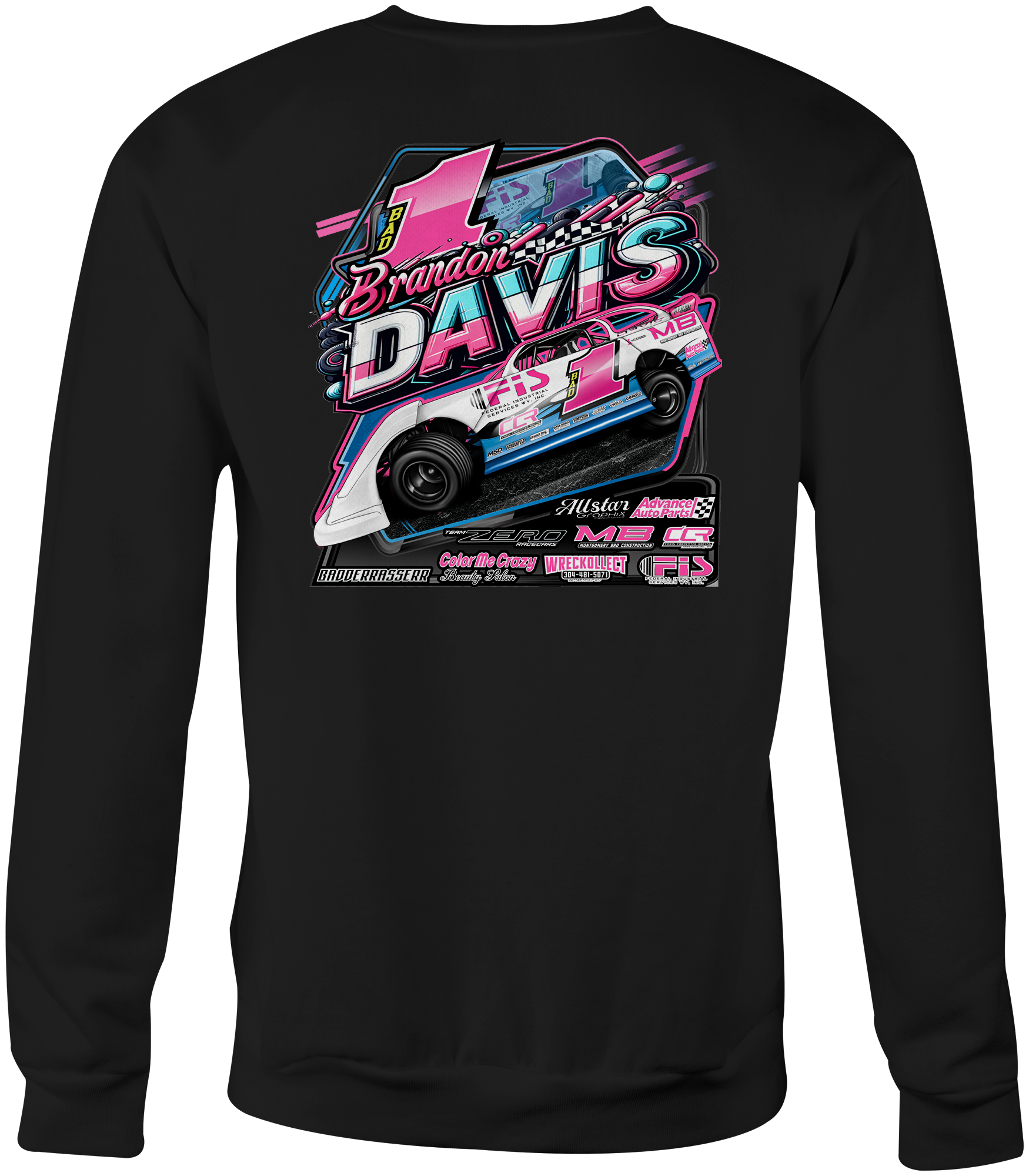 Support Brandon Davis with their custom apparel! Available in Black, Sport Gray, Light Blue, Daisy Yellow and White. Graphics are direct to garment printed with a left chest image and a full back image.