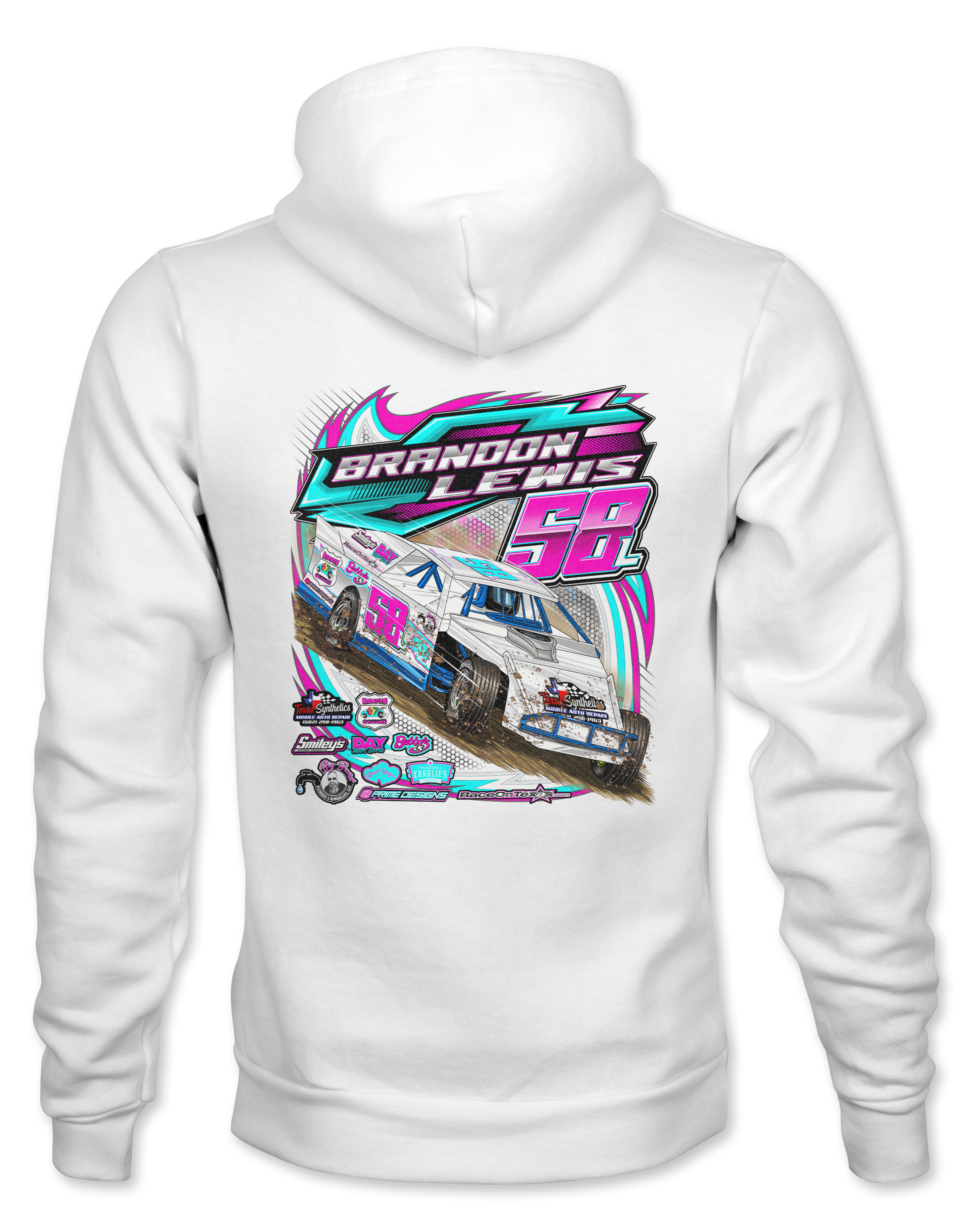 Support Brandon Lewis and his team with their custom apparel! Available in Black, Sport Gray and White. Graphics are direct to garment printed with a left chest image and a full back image.