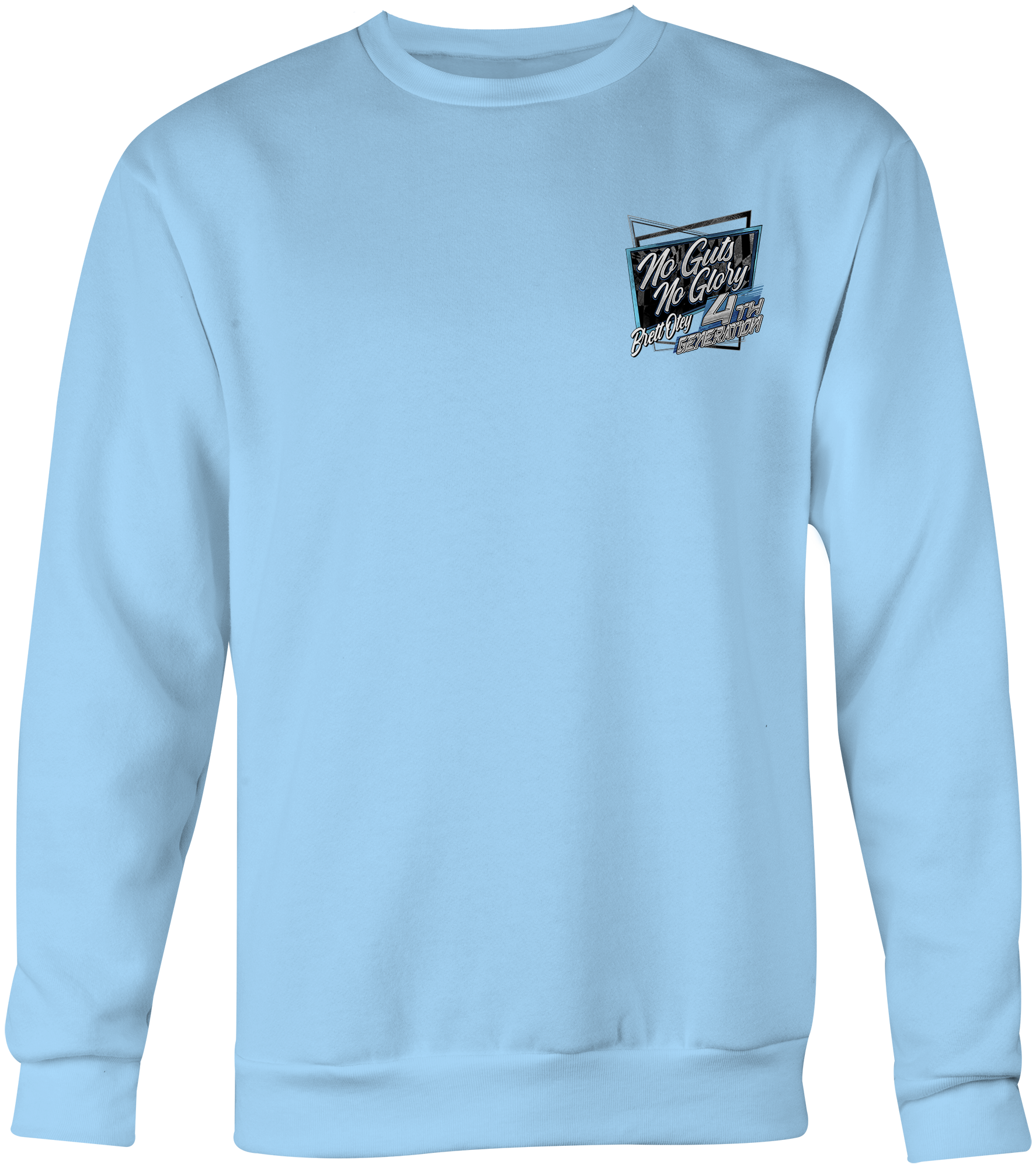 Support Brett Otey with their custom apparel! Available in Black, Sport Gray, Light Blue and White. Graphics are direct to garment printed with a left chest image and a full back image.