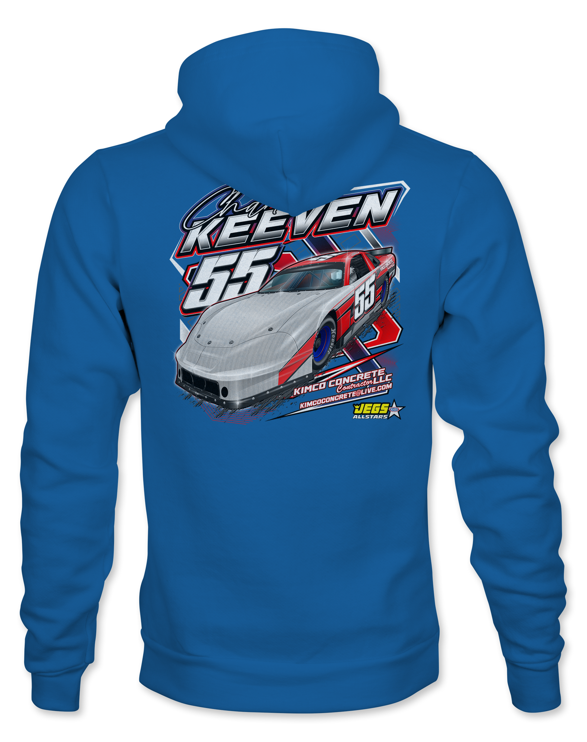 Support Charlie Keeven with their custom apparel! Available in Black, Sport Gray, Royal Blue, Red and White. Graphics are direct to garment printed with a left chest image and a full back image.
