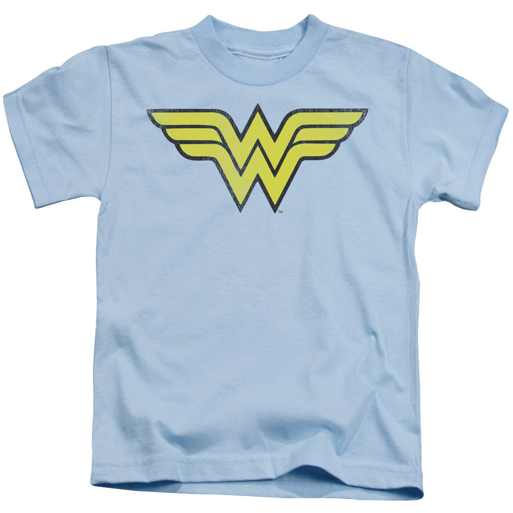 DC Comics Ww Logo Distressed Juvenile Kids Youth T Shirt Light Blue Officially Licensed