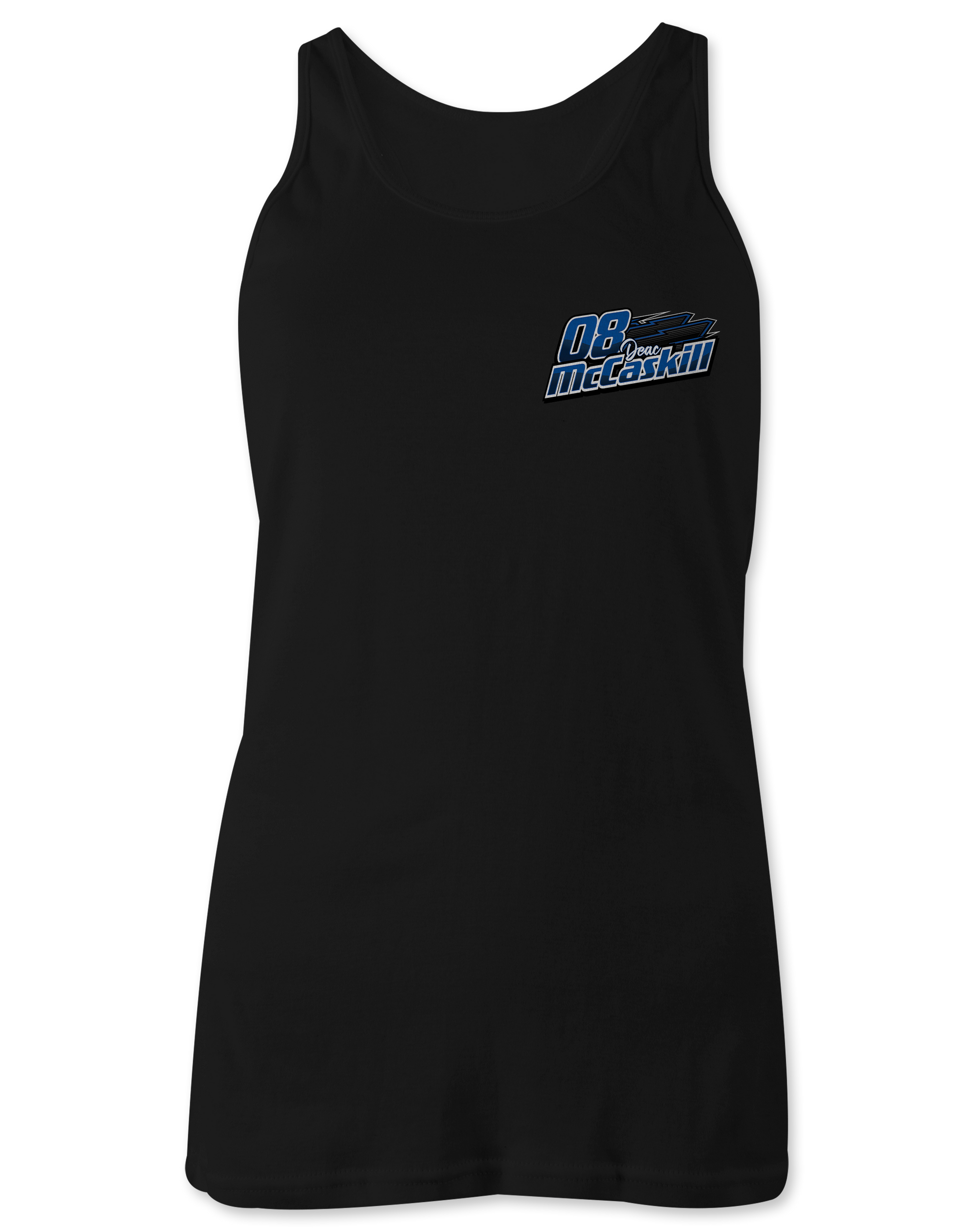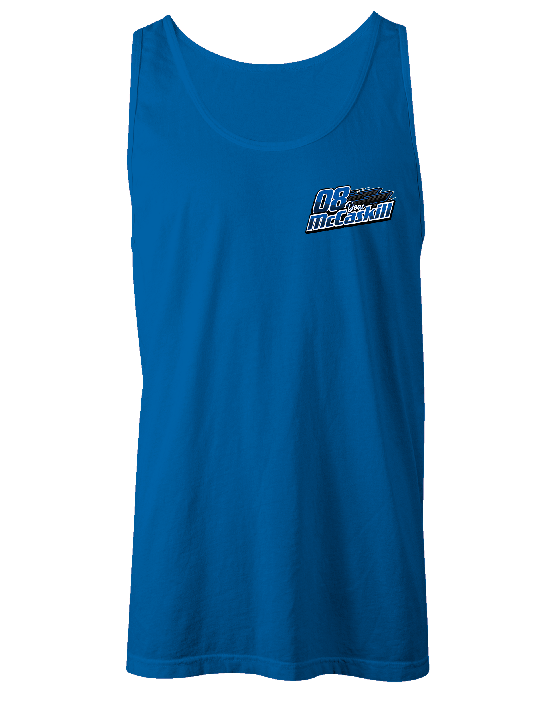 Support Deac McCaskill and his team with their custom apparel! Available in Black, White, Royal Blue and Sport Gray. Graphics are direct to garment printed with a left chest image and a full back image.