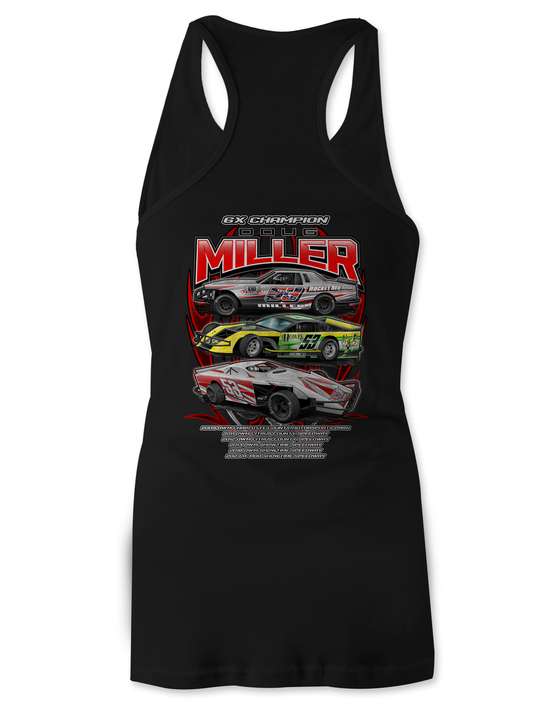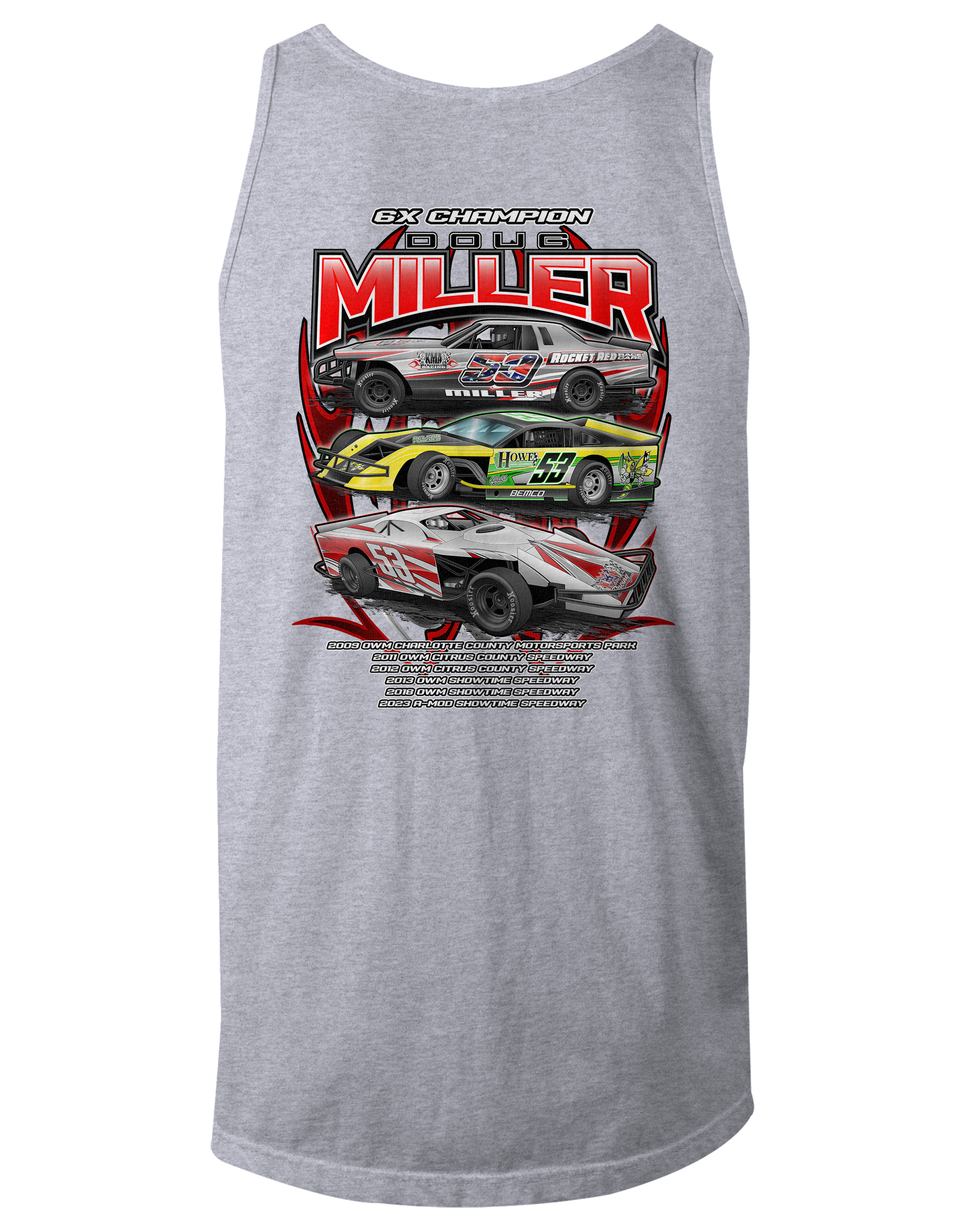 Support Doug Miller with their custom apparel! Available in Black, Sport Gray and White. Graphics are direct to garment printed with a left chest image and a full back image.