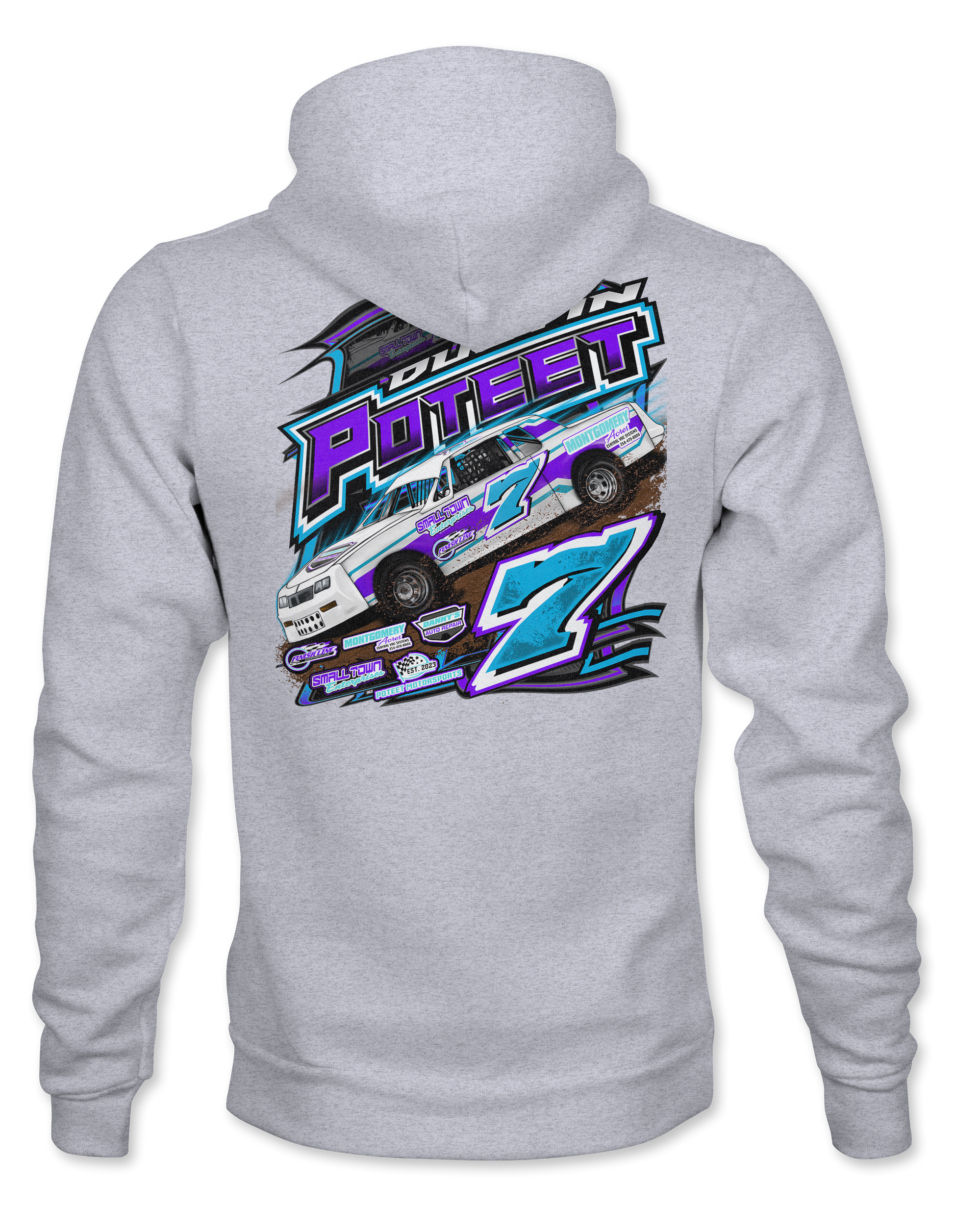 Support Dustin Poteet with their custom apparel! Available in Black, Sport Gray and White. Graphics are direct to garment printed with a left chest image and a full back image.