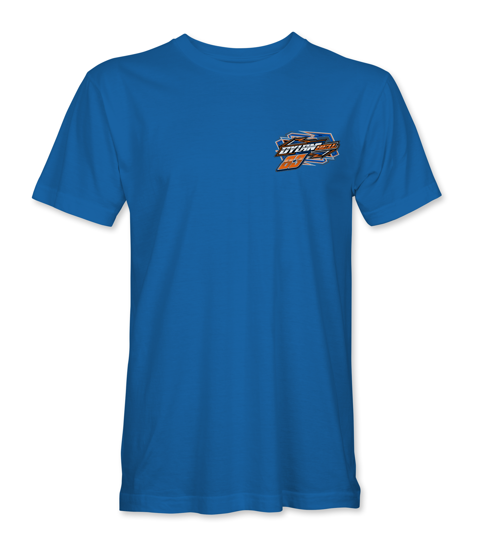 Support Dylan Bell with their custom apparel! Available in Black, Sports Gray, Dark Heather Gray, Royal Blue, Carolina Blue and Yellow. Graphics are direct to garment printed with a left chest image and a full back image.