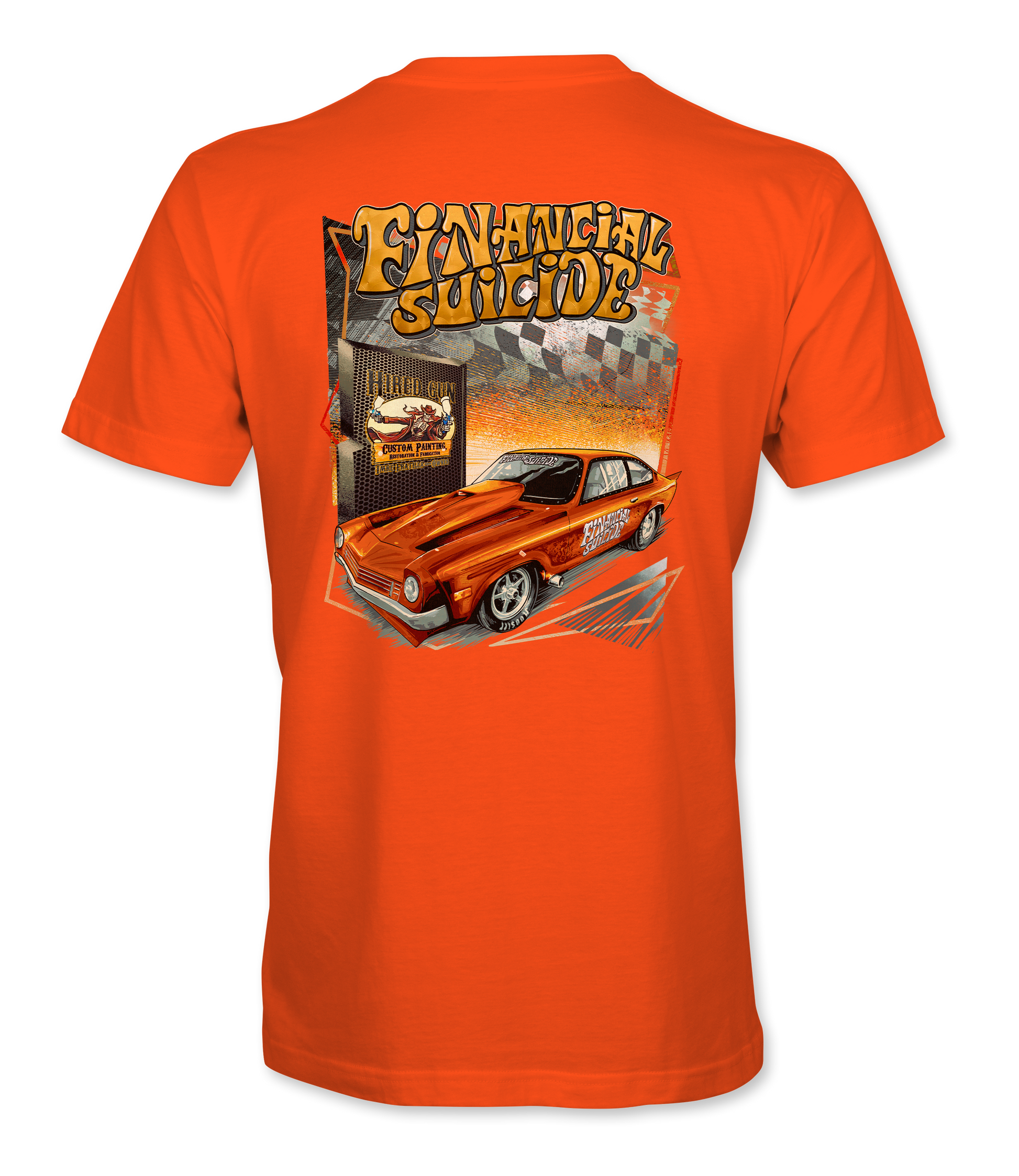 Support Financial Suicide with their custom apparel! Available in Black, Orange, Sport Gray and White. Graphics are direct to garment printed with a left chest image and a full back image.