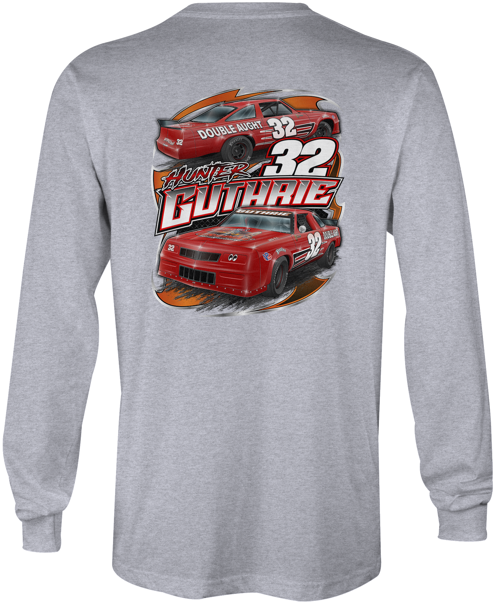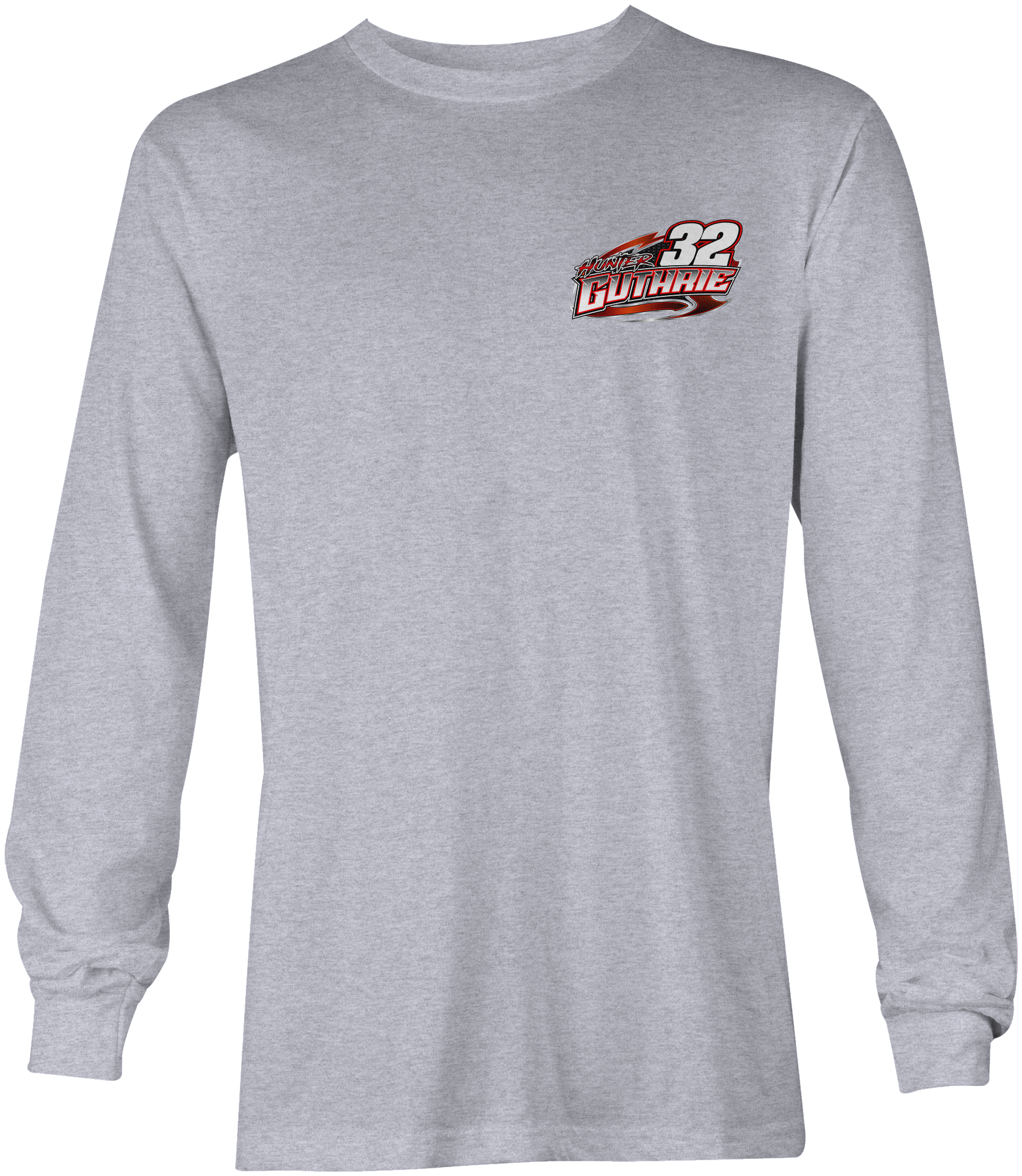 Support Hunter Guthrie with their custom apparel! Available in Black, Sport Gray and White. Graphics are direct to garment printed with a left chest image and a full back image.