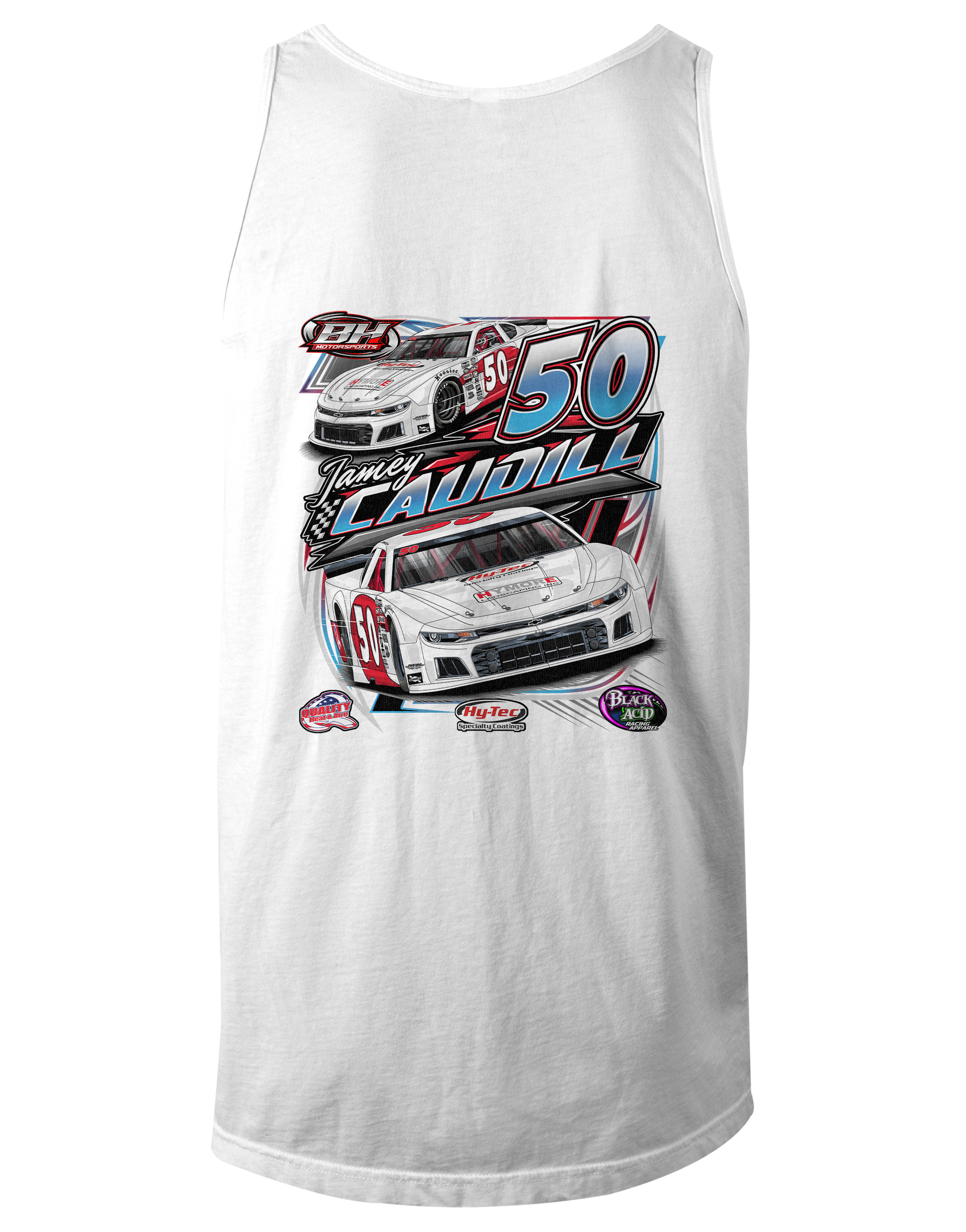 Support Jamey Caudill and his team with their custom apparel! Available in Black, Royal Blue, Sport Gray and White. Graphics are direct to garment printed with a left chest image and a full back image.
