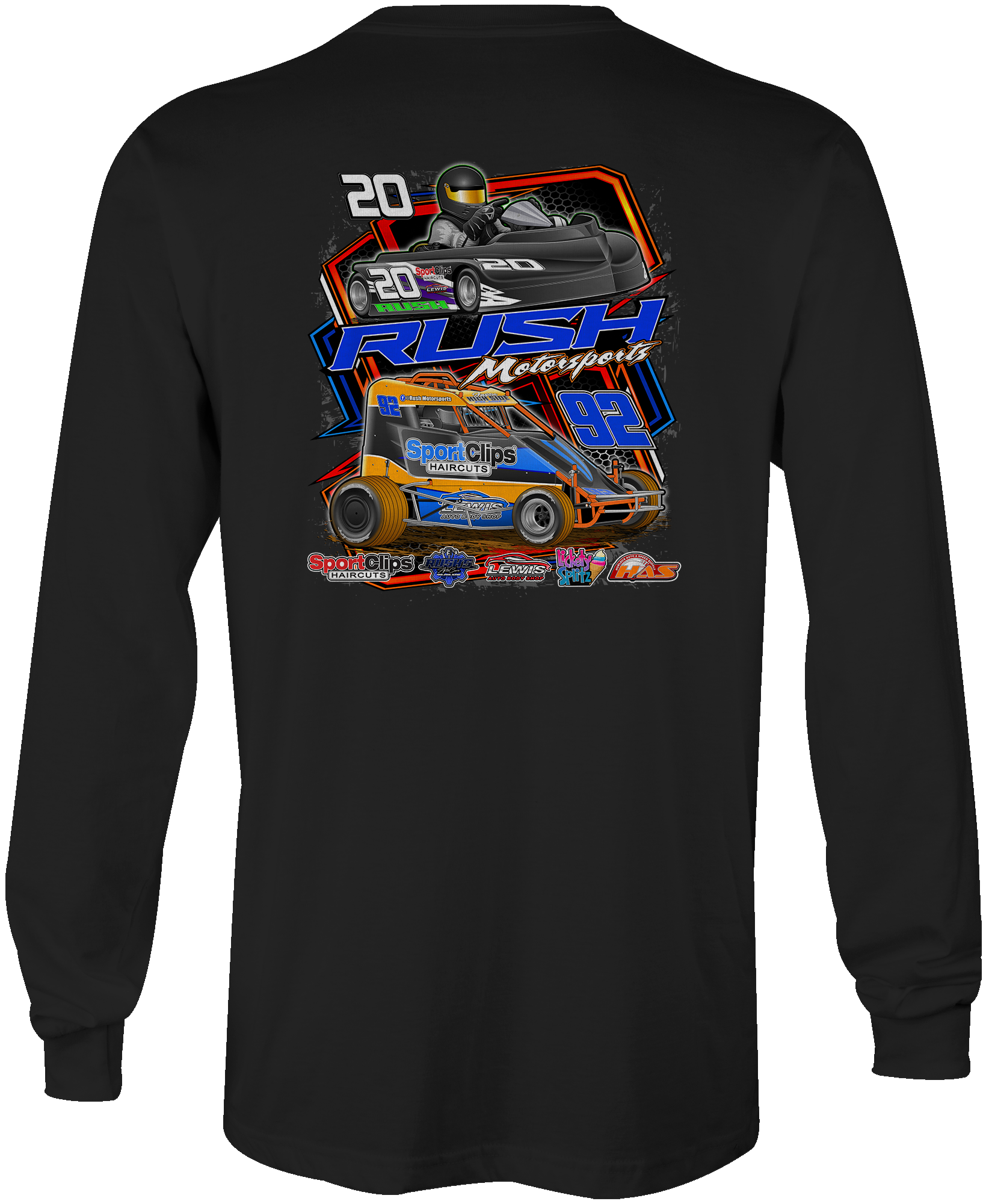Support Jason Rush with their custom apparel! Available in Black, Sport Gray and White. Graphics are direct to garment printed with a left chest image and a full back image.