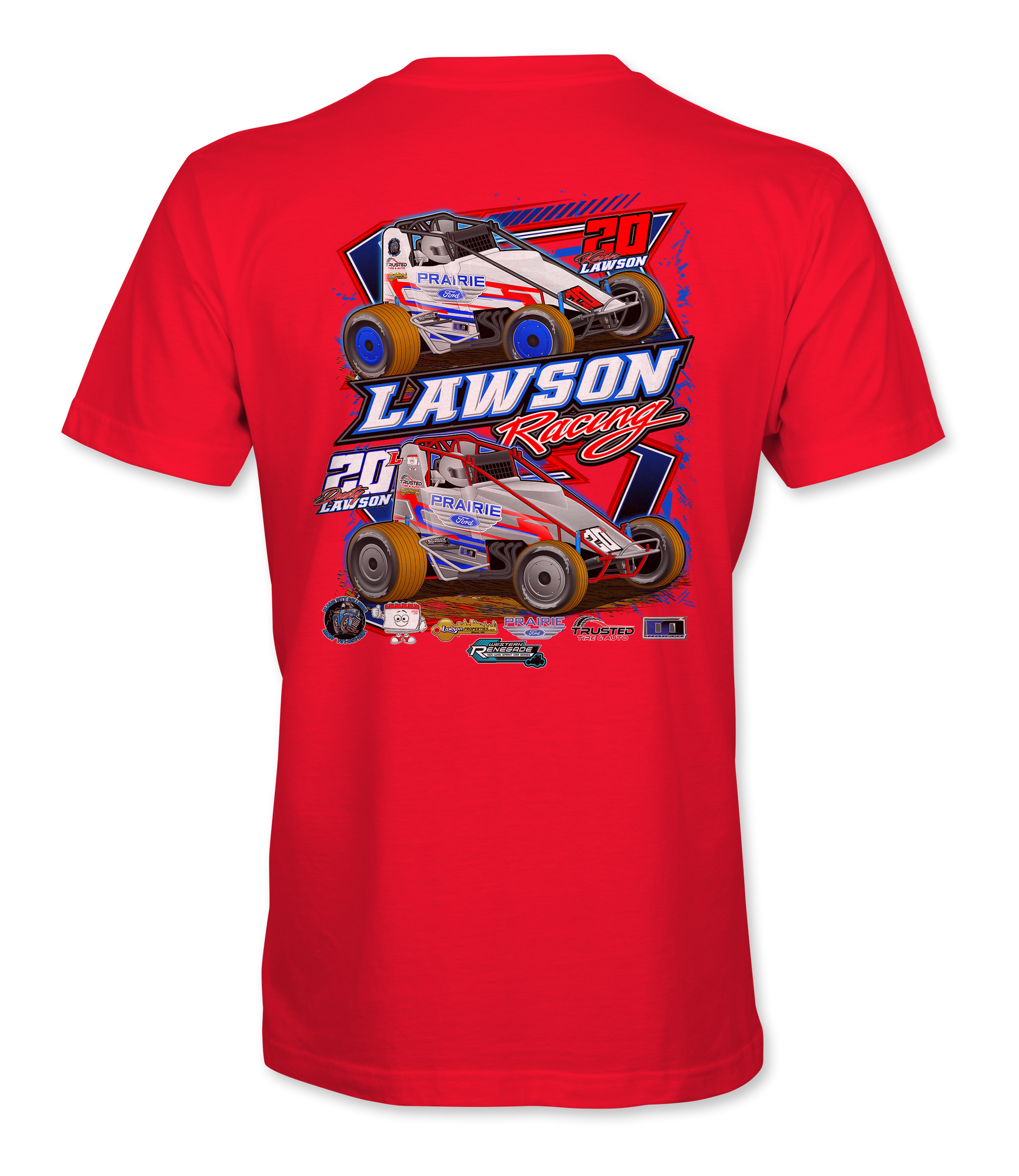 Support Lawson Racing 2024 with their custom apparel! Available in Black, Sport Gray, Royal Blue, Red and White. Graphics are direct to garment printed with a left chest image and a full back image.