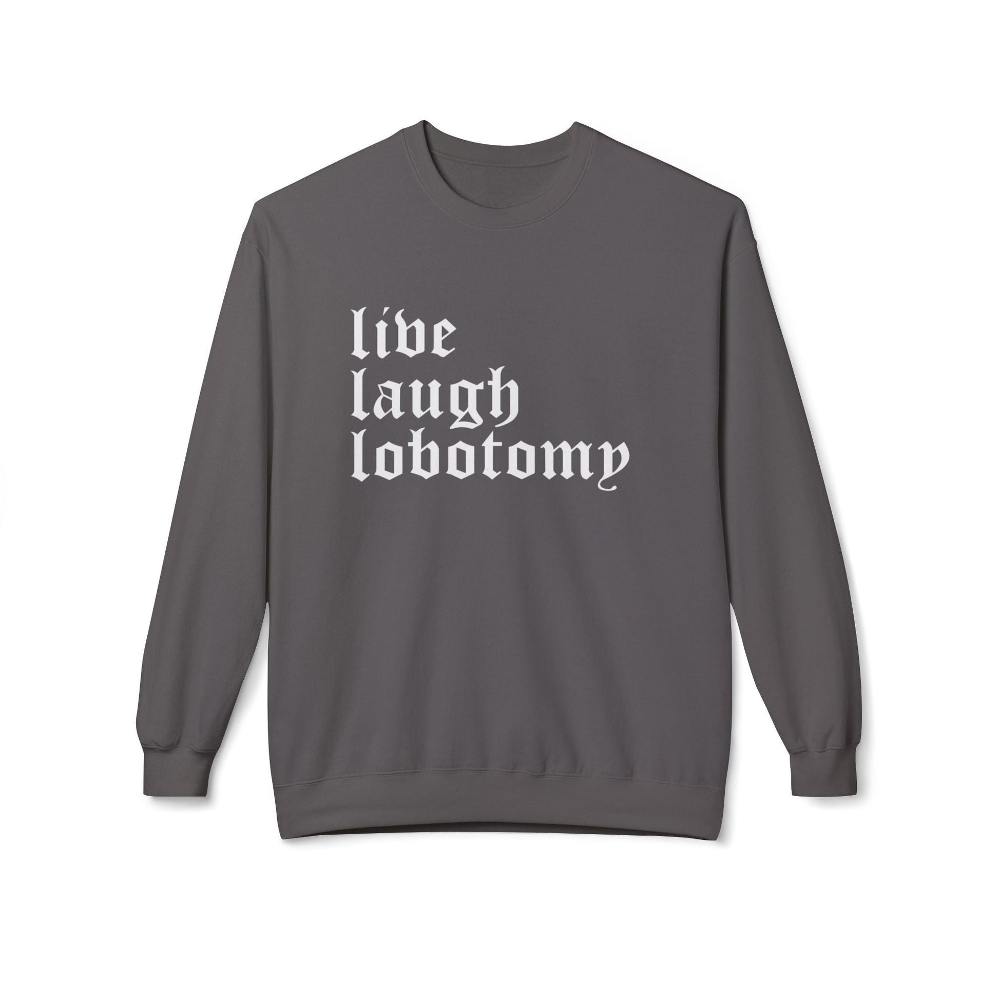 Goth Cloth proudly presents the 'Live Laugh Lobotomy' Long Sleeve Crew Neck Unisex Sweatshirt, a unique blend of gothic style and dark humor.