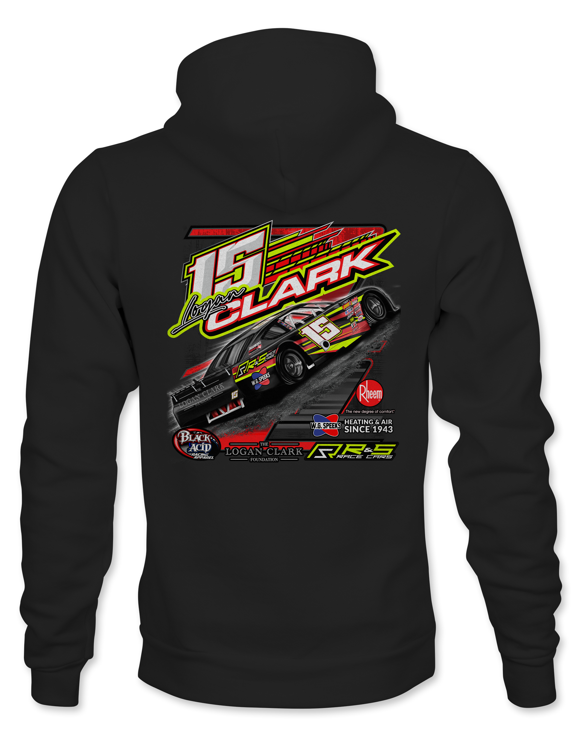 Support Logan Clark and his team with their custom apparel! Available in Black and Sport Gray. Graphics are direct to garment printed with a left chest image and a full back image.