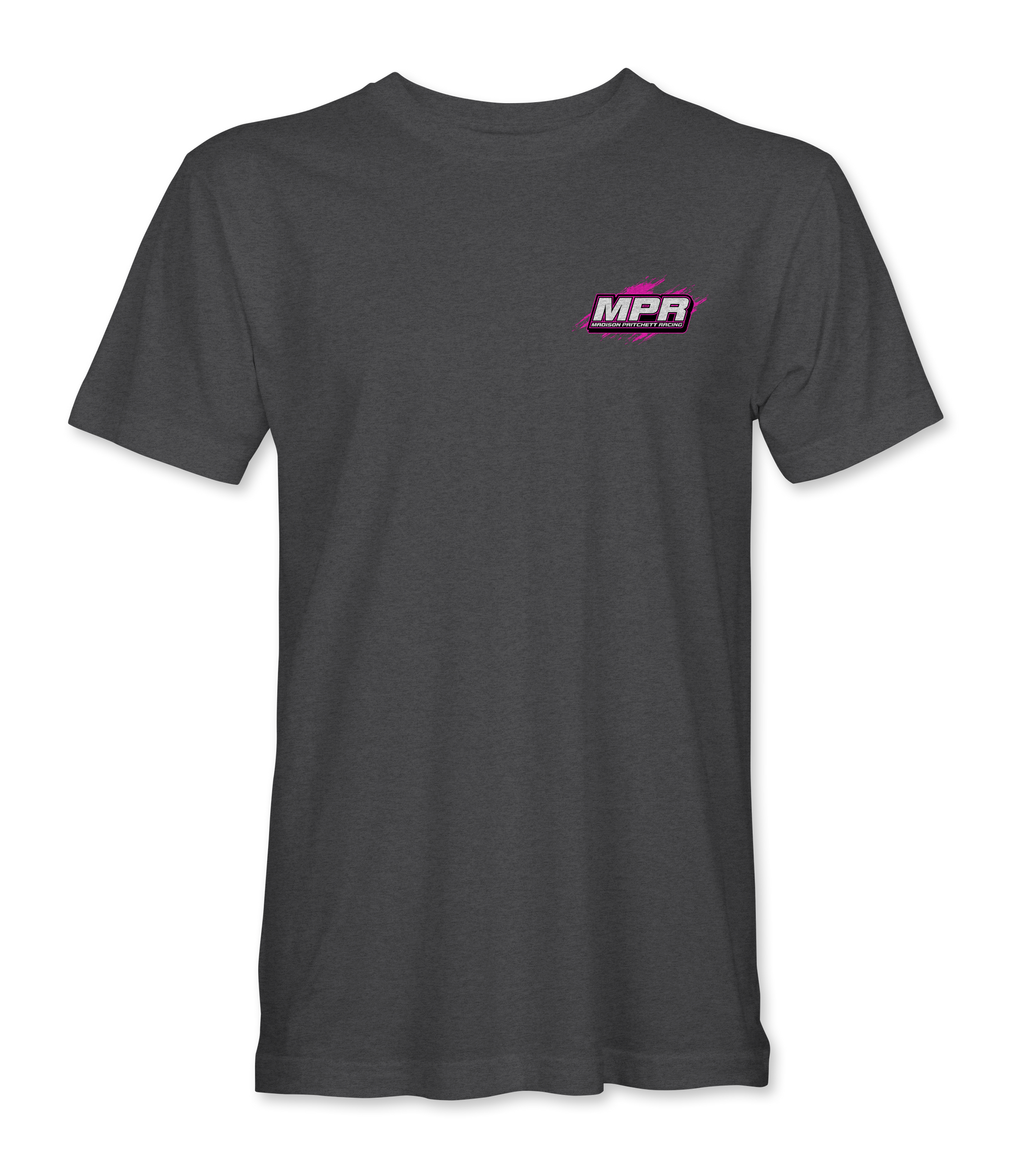 Support Madison Pritchett and her team with their custom apparel! Available in Black. Graphics are direct to garment printed with a left chest image and a full back image.
