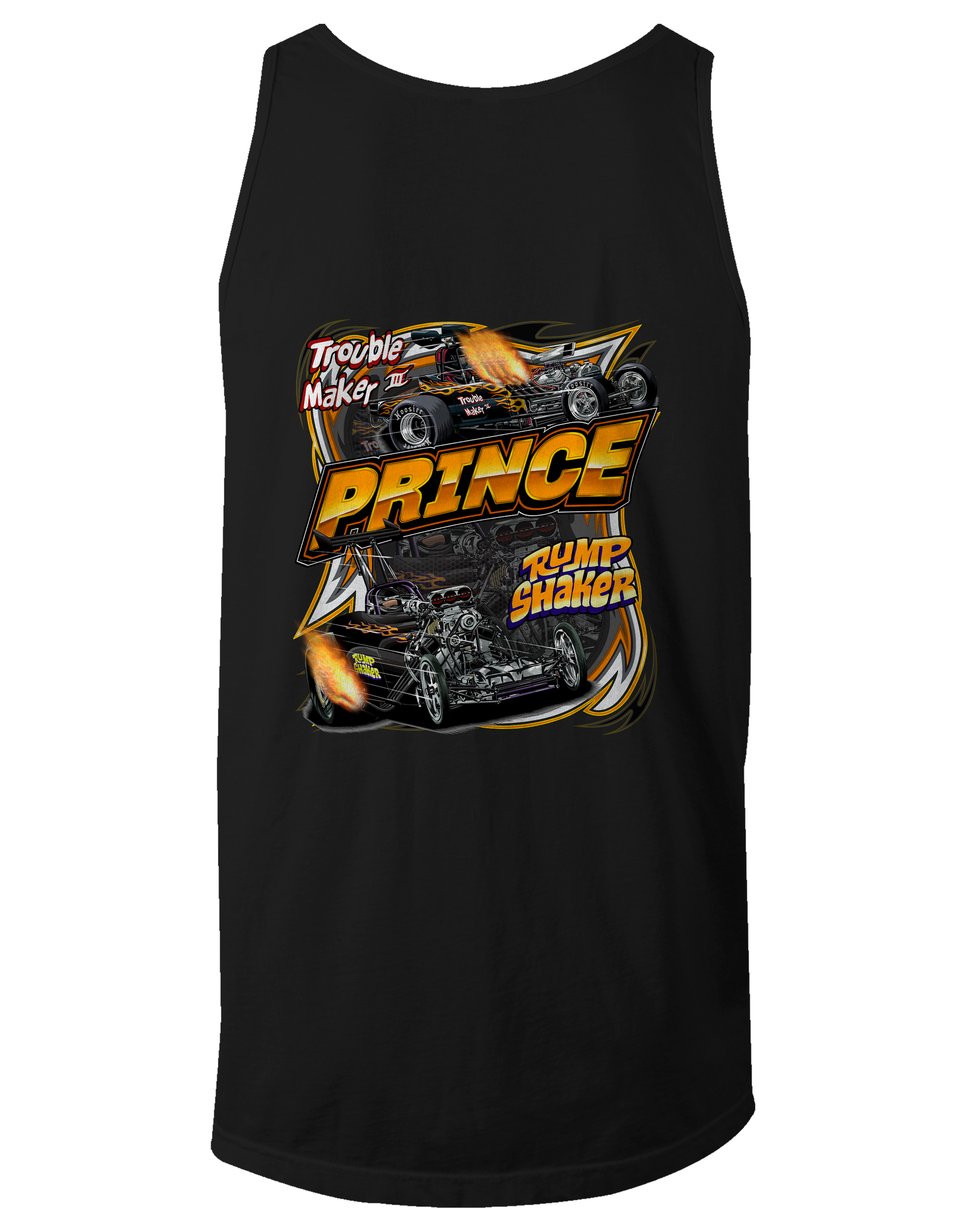 Support Mark Prince and his team with their custom apparel! Available in Black and Sport Gray. Graphics are direct to garment printed with a left chest image and a full back image.
