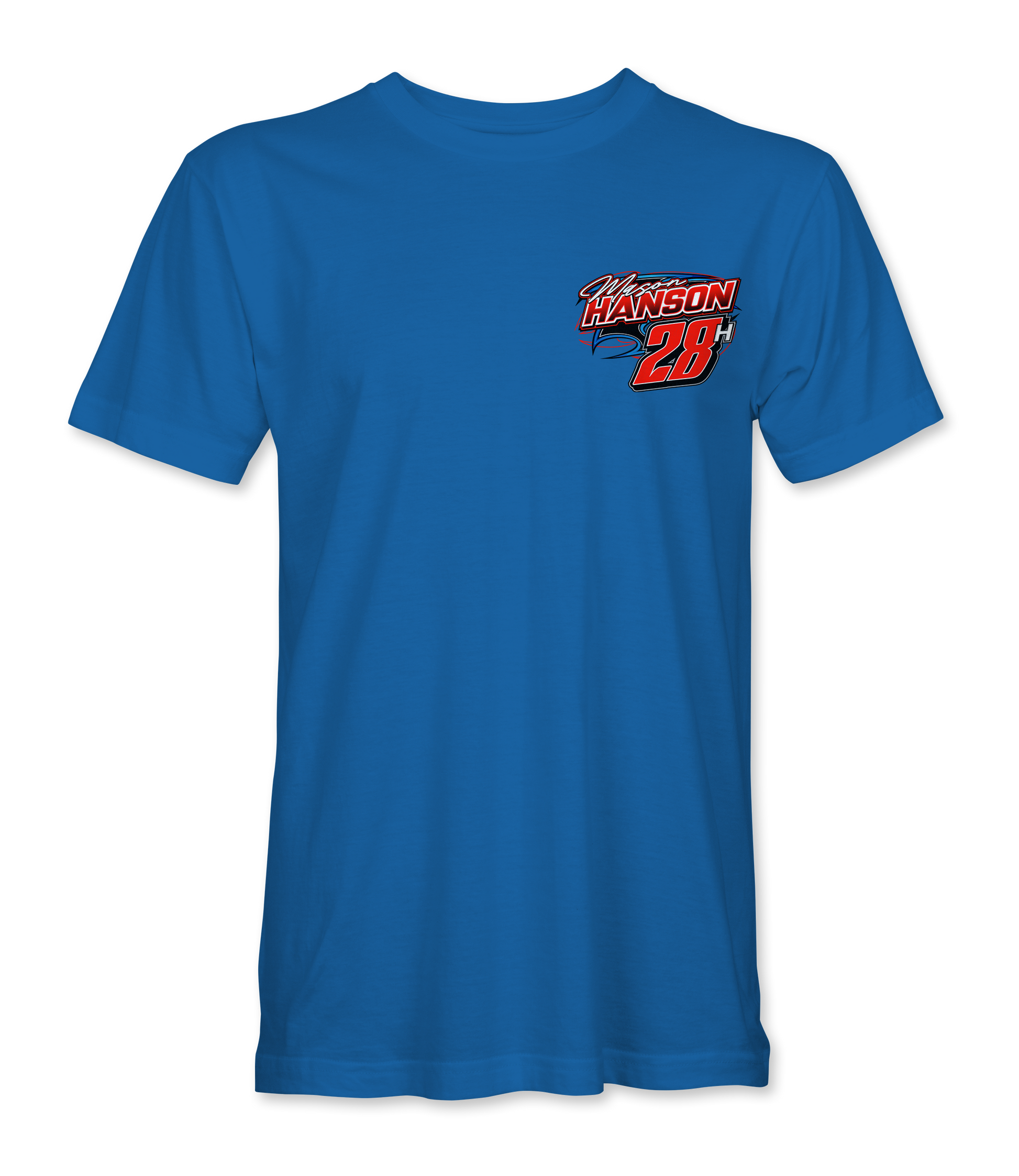 Support Mason Hanson 2024 with their custom apparel! Available in Black, Sport Gray, Royal Blue and White. Graphics are direct to garment printed with a left chest image and a full back image.