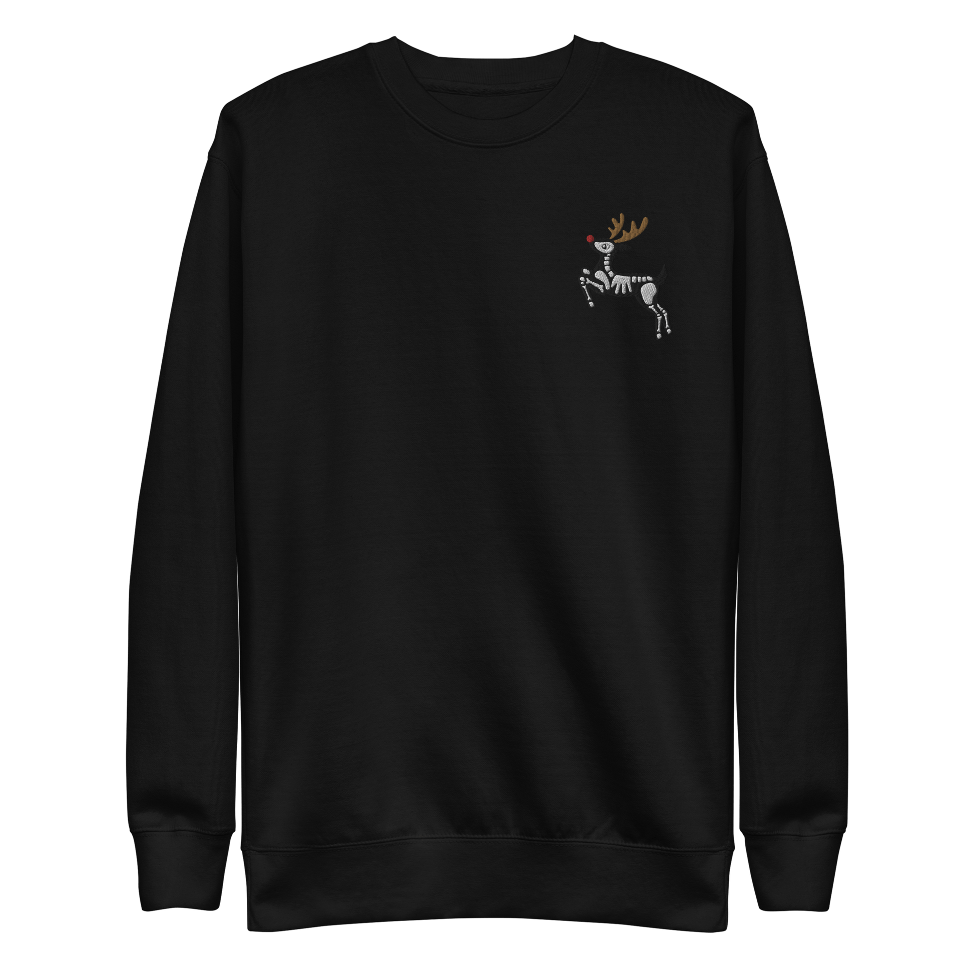 Unleash your wild side with the Goth Cloth Co. unisex tattoo-style embroidered sweatshirt. The left chest features a skeleton reindeer embroidery. This sweatshirt blends classic streetwear with a touch of rebellious edge, making it a perfect choice for those who like their style a little untamed.