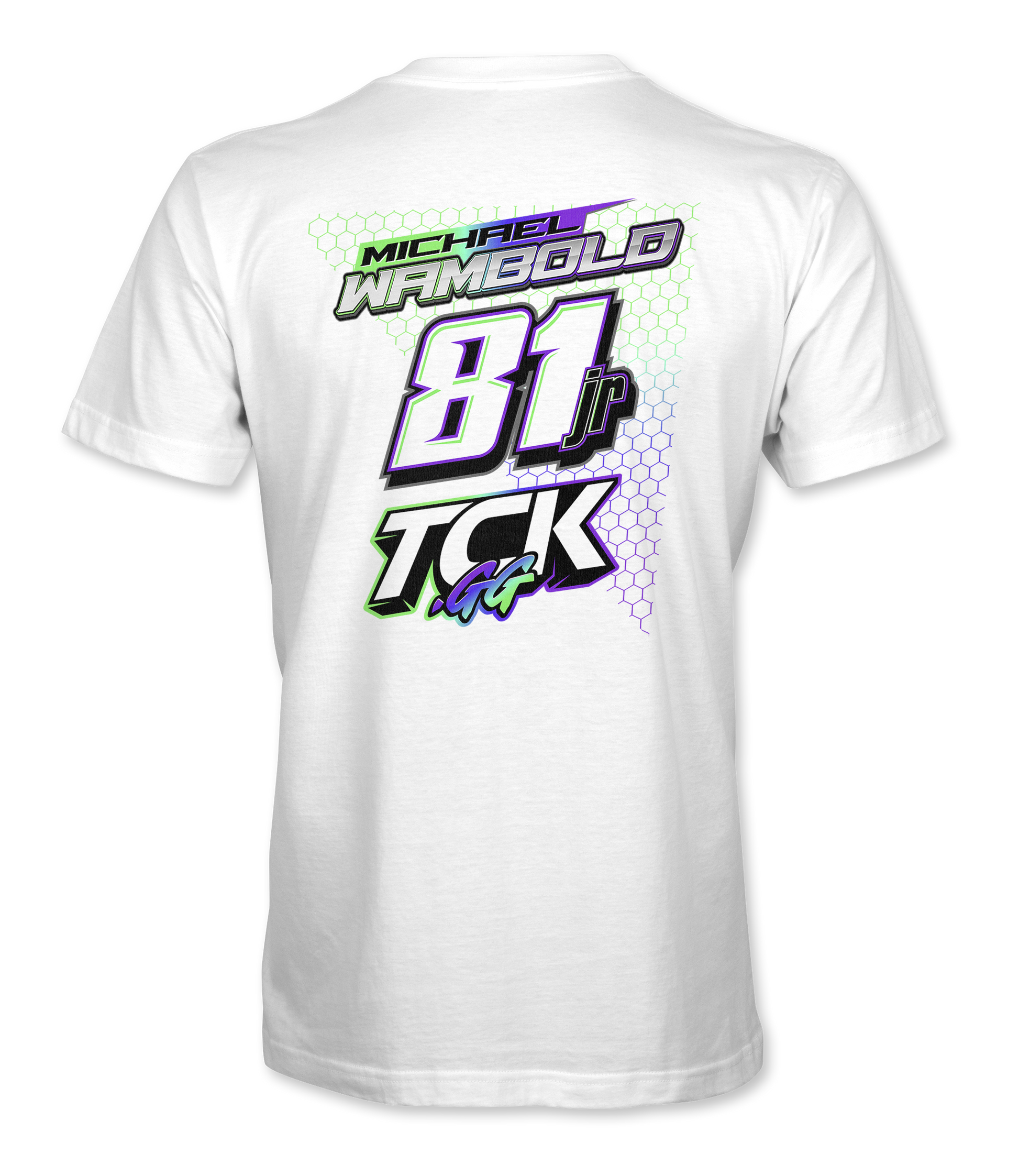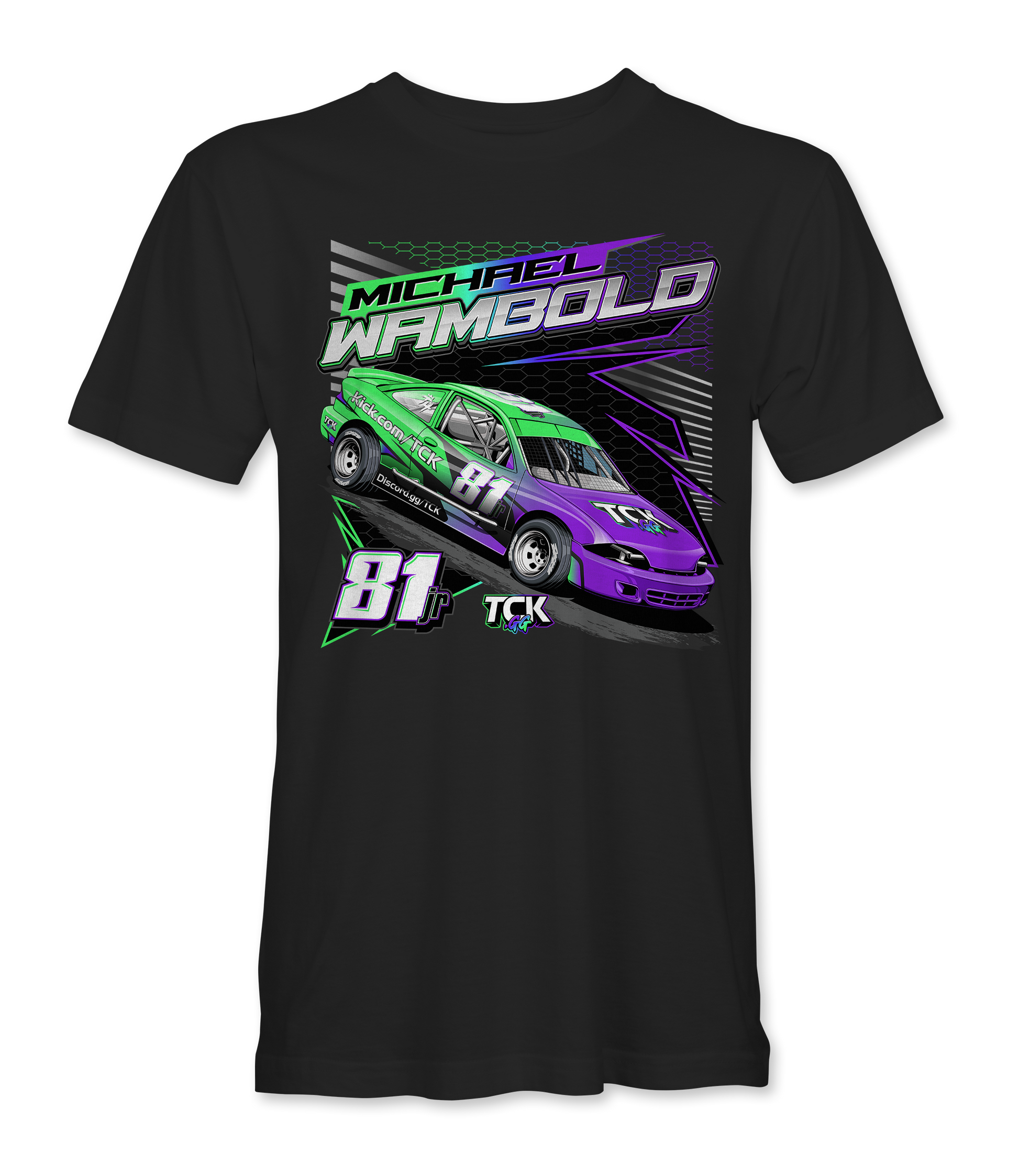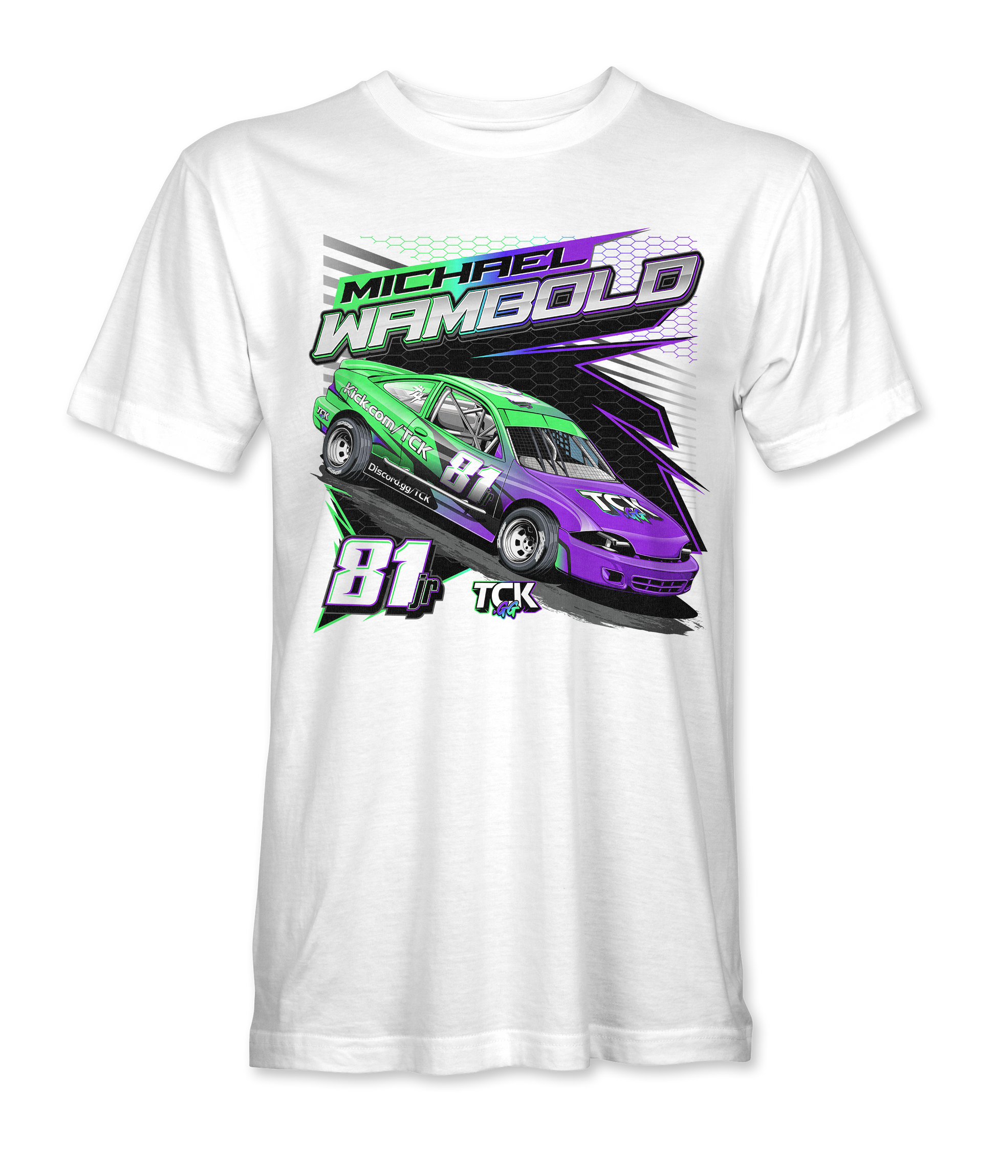 Support Michael Wambold with their custom apparel! Available in Black, Sport Gray and White. Graphics are direct to garment printed with a left chest image and a full back image.