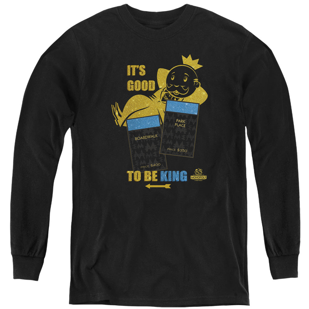 Monopoly Its Good to Be King Long Sleeve Kids Youth T Shirt Black
