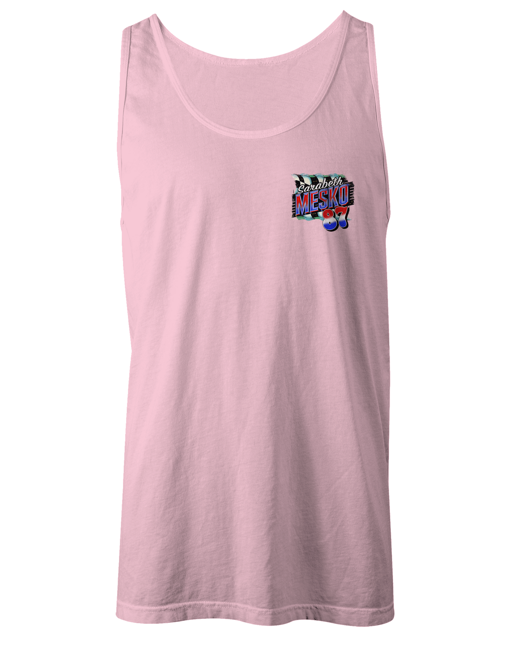 Support Sarabeth Mesko with their custom apparel! Available in Black, Sports Gray, Light Pink and White. Graphics are direct to garment printed with a left chest image and a full back image.