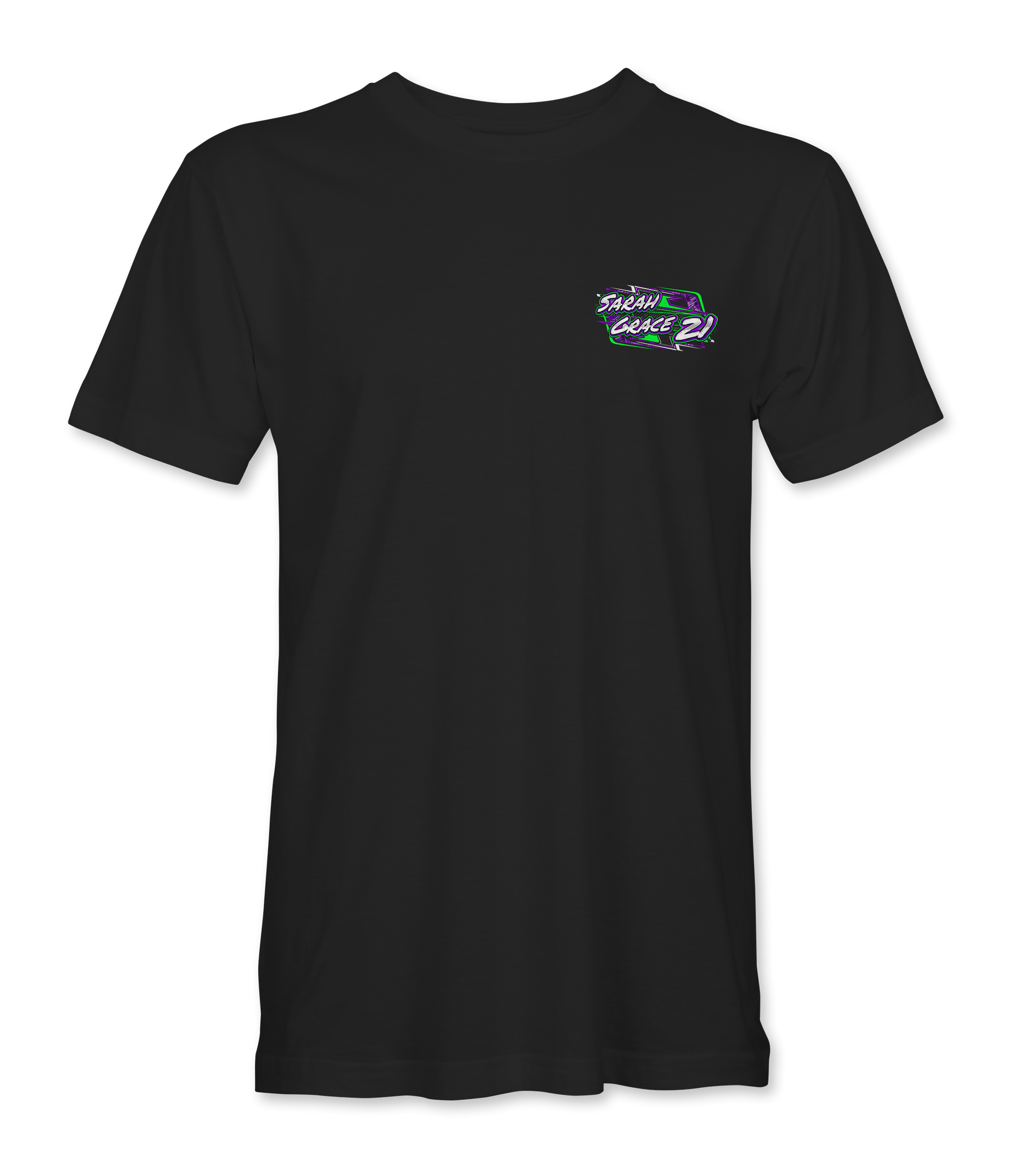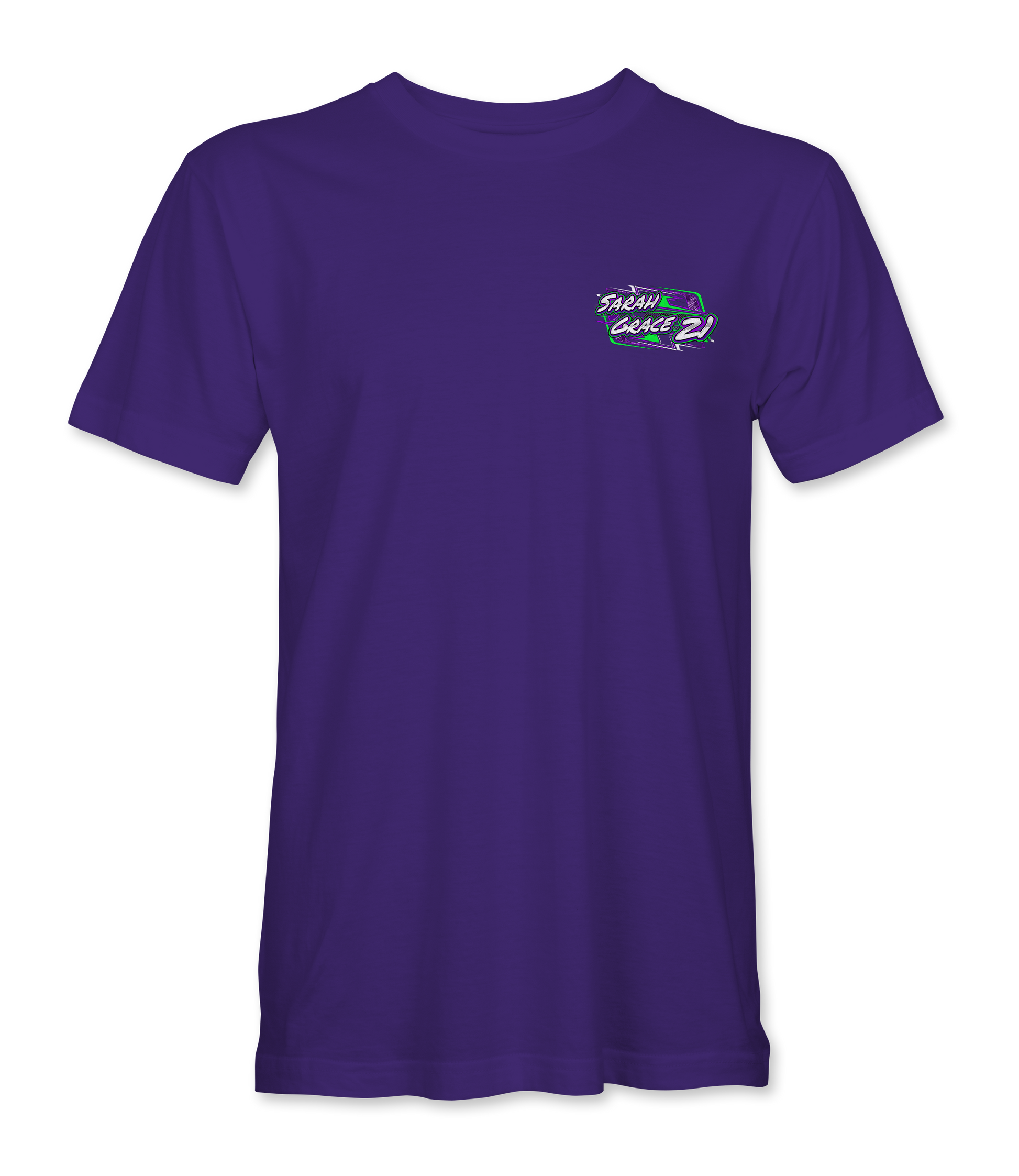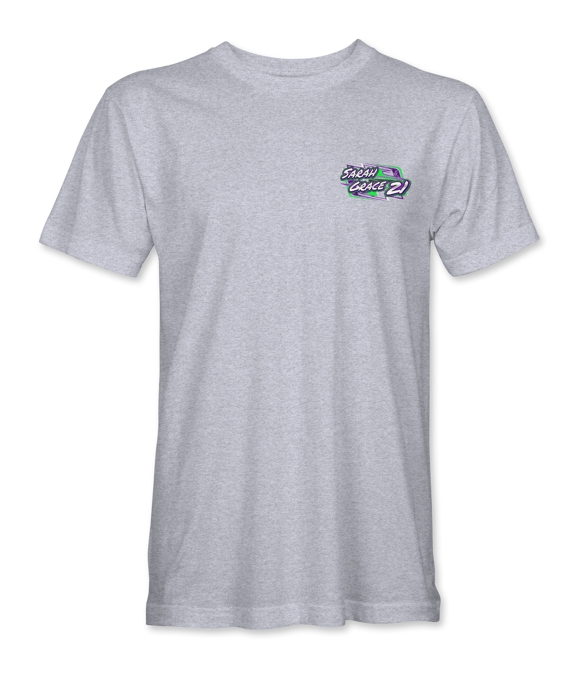 Support Sarah Grace Whitesell with their custom apparel! Available in Black, Purple and Sport Gray. Graphics are direct to garment printed with a left chest image and a full back image.