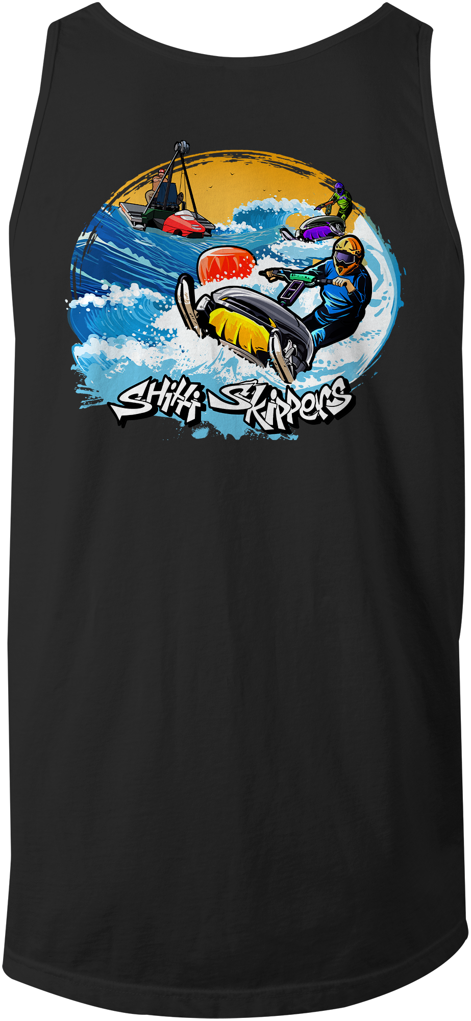 Support the Shitti Skippers team with their custom apparel! Available in Black. Graphics are direct to garment printed with a left chest image and a full back image.