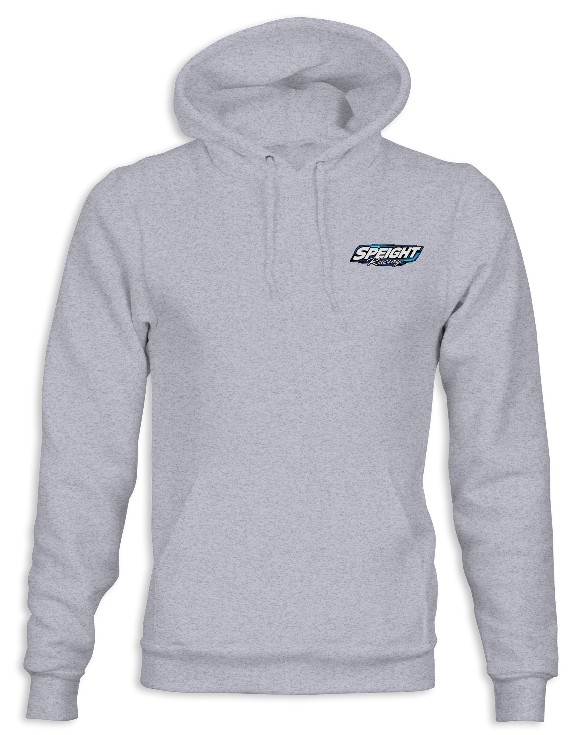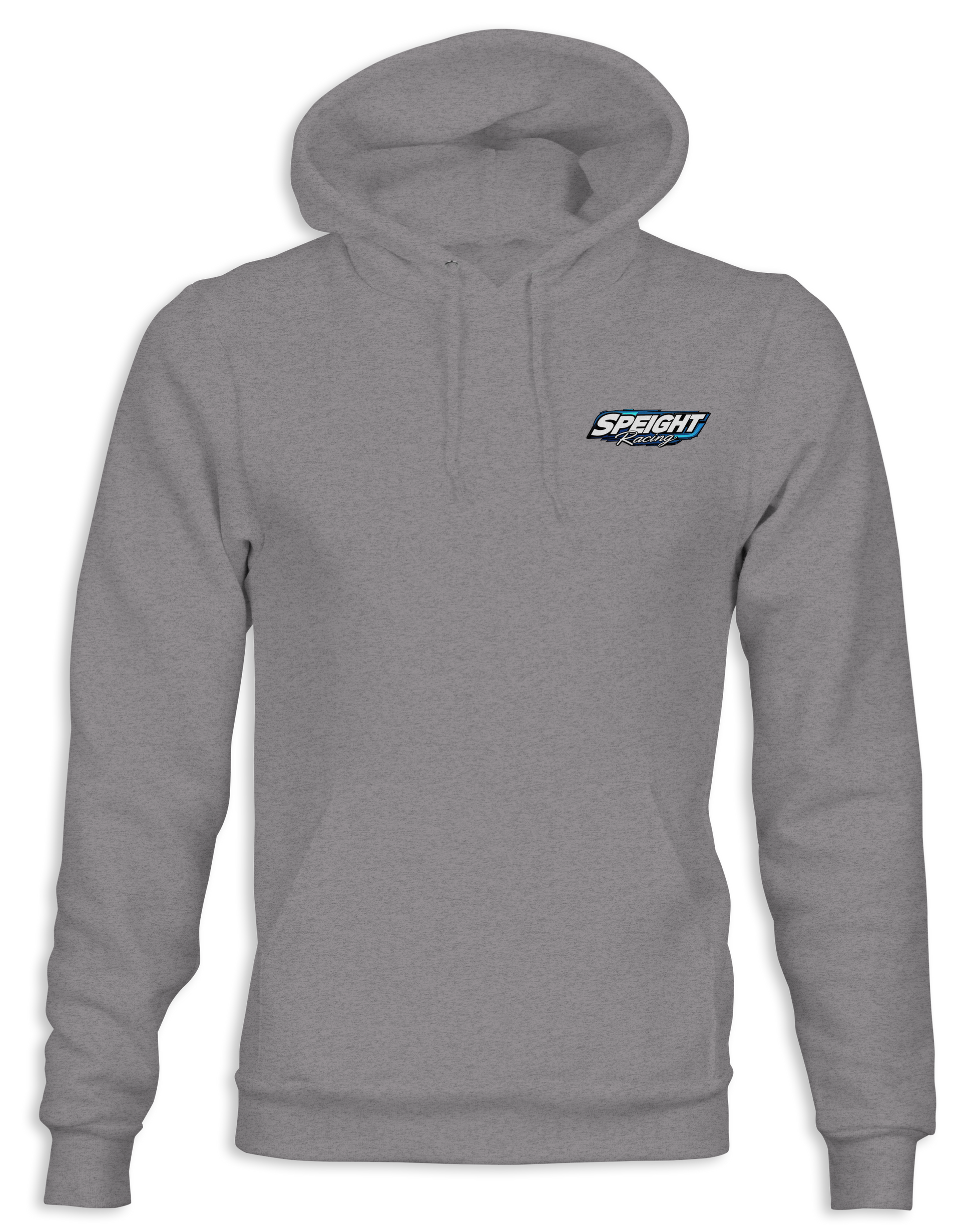 Support Speight Racing with their custom apparel! Available in sports grey , graphite heather, black, azalea pink, and sky blue. Graphics are direct to garment printed with a left chest image and a full back image.