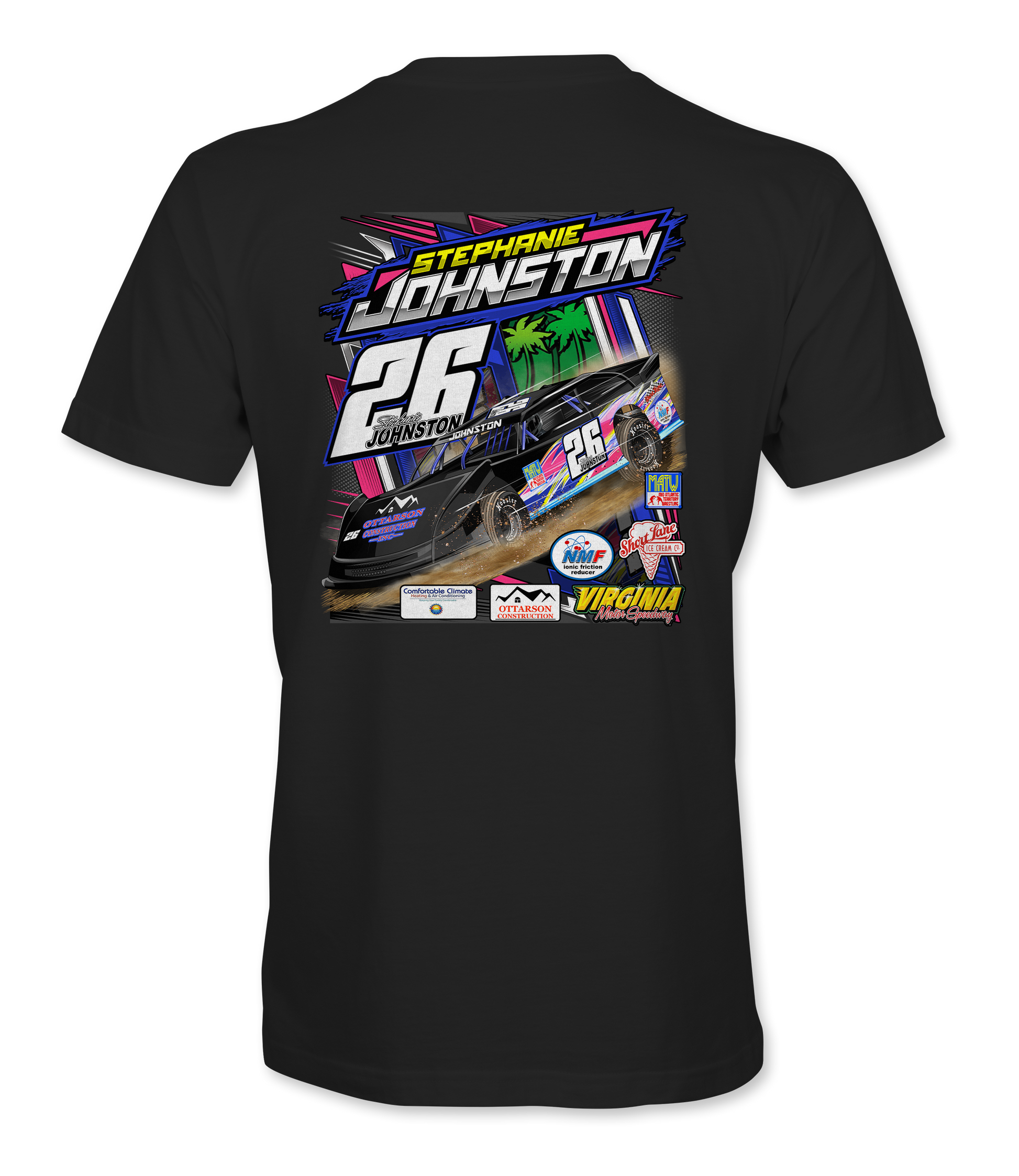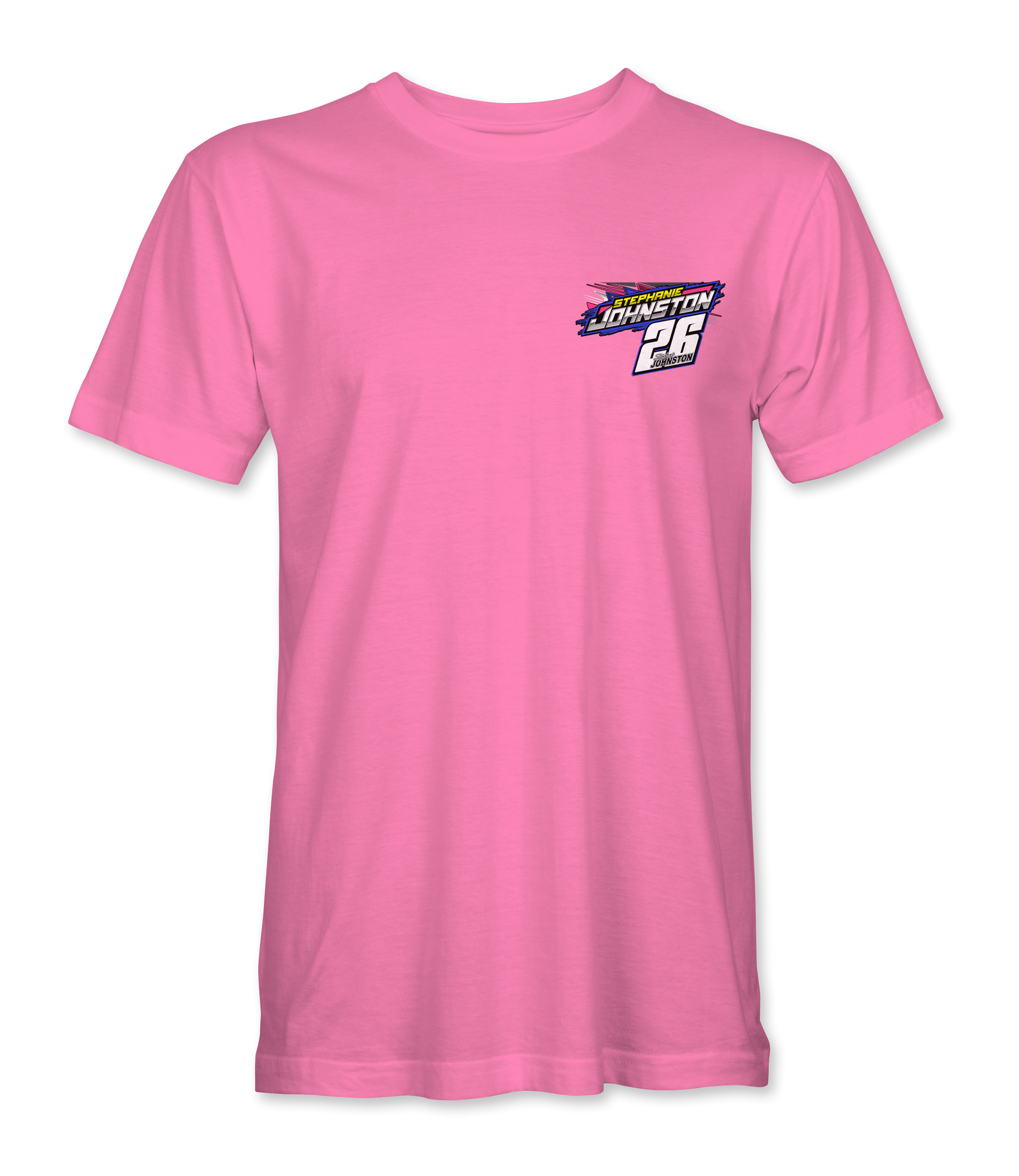 Support Stephanie Johnston and her team with their custom apparel! Available in Black, Azalea, Sport Gray and White. Graphics are direct to garment printed with a left chest image and a full back image.