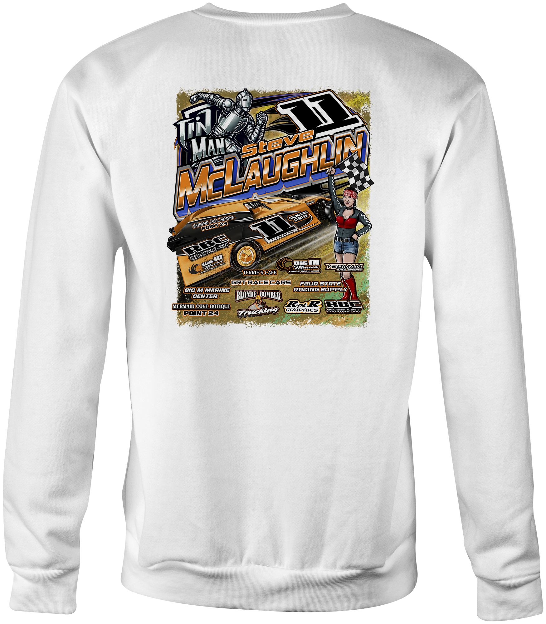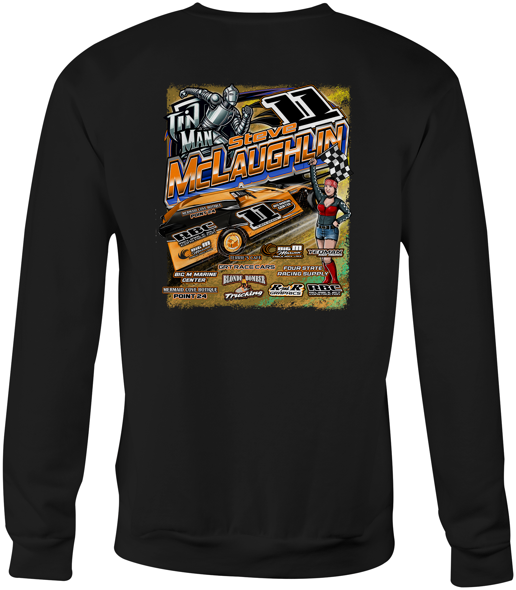 Support Steve McLaughlin with their custom apparel! Available in Black, Sport Gray and White. Graphics are direct to garment printed with a left chest image and a full back image.
