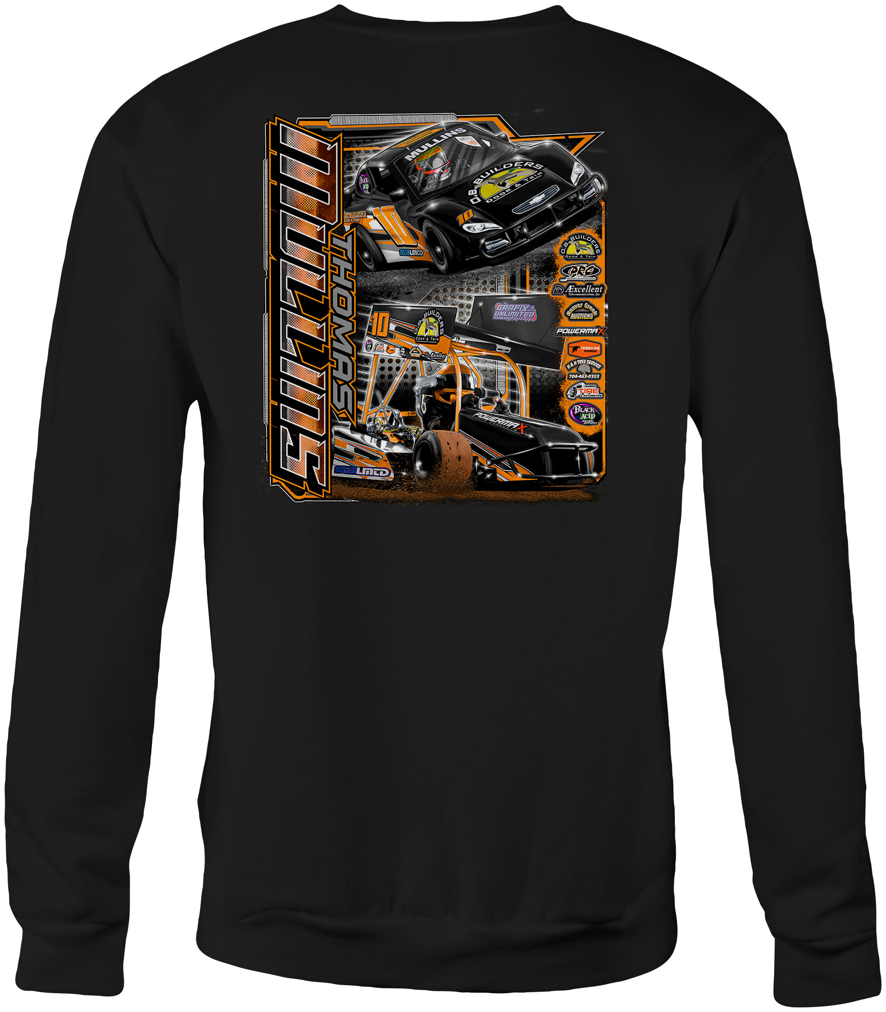Support Thomas Mullins 2025 with their custom apparel! Available in Black, Sport Gray, Safety Orange and White. Graphics are direct to garment printed with a left chest image and a full back image.