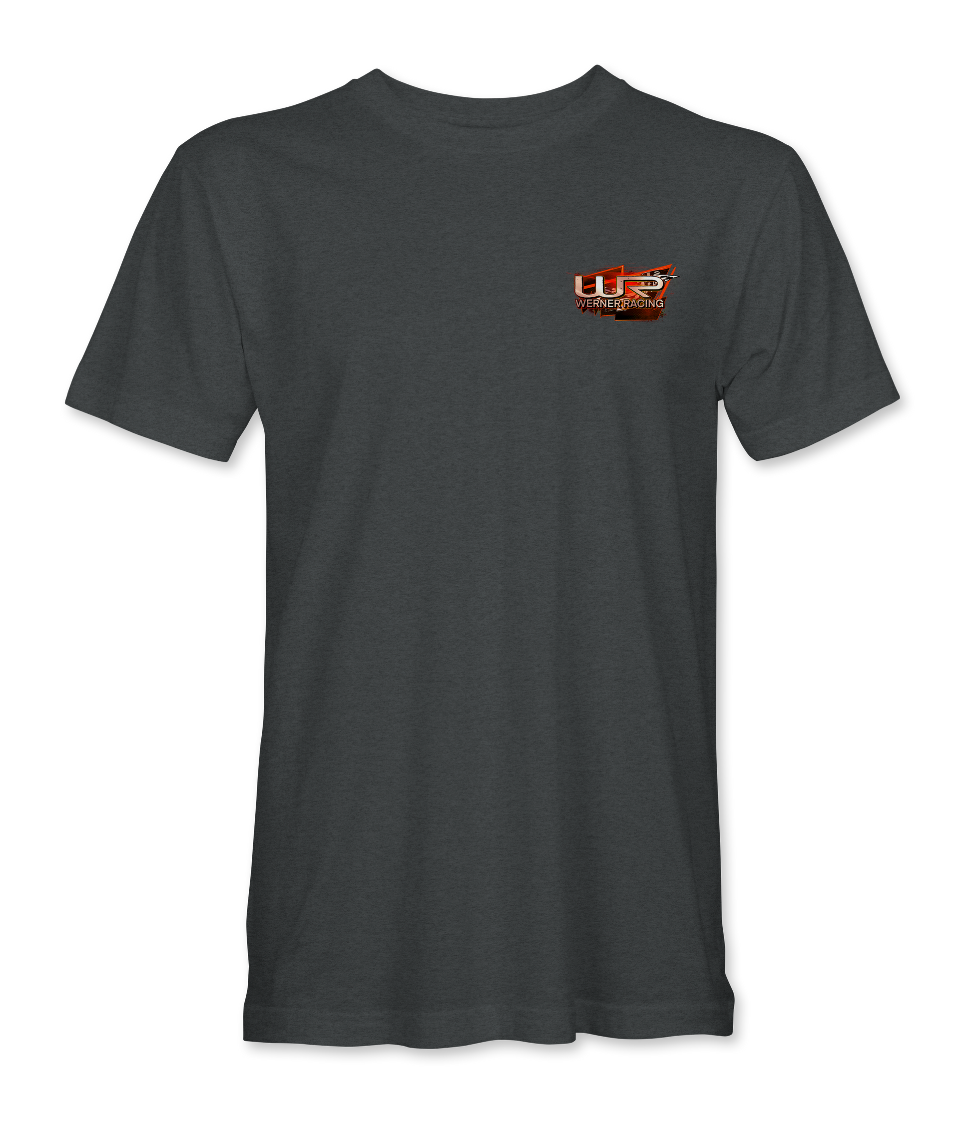 Support Werner Racing and their team with their custom apparel! Available in Black and Dark Heather. Graphics are direct to garment printed with a left chest image and a full back image.