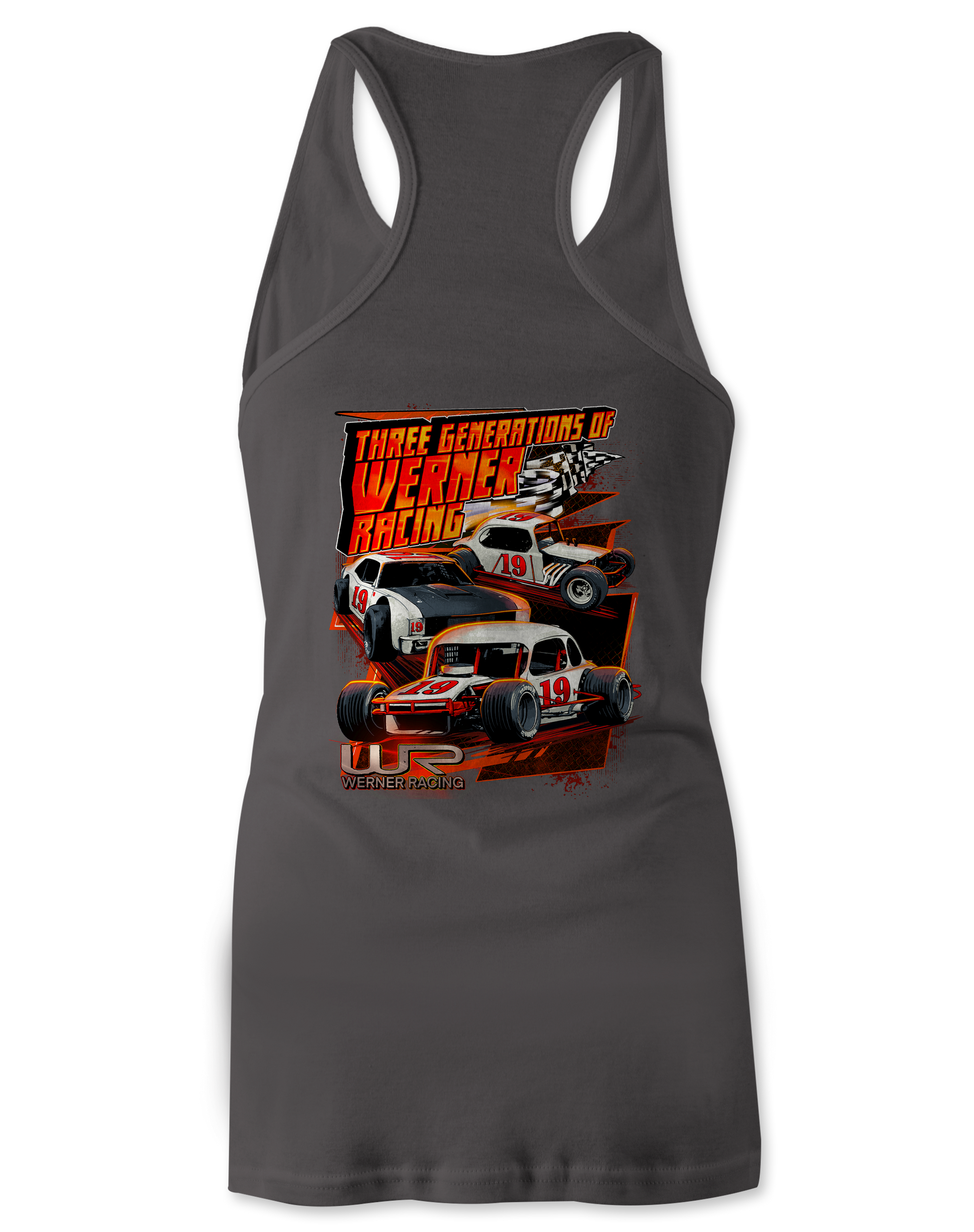 Support Werner Racing and their team with their custom apparel! Available in Black, Dark Gray, and Graphite Heather. Graphics are direct to garment printed with a left chest image and a full back image.